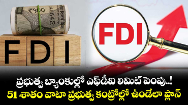 Read Moreప్రభుత్వ బ్యాంకుల్లో ఎఫ్డీఐ లిమిట్ పెంపు..! 51 శాతం వాటా ప్రభుత్వ కంట్రోల్లో ఉండేలా ప్లాన్