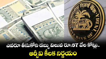 Read Moreఎవరూ తీసుకోని డబ్బు విలువ రూ.67 వేల కోట్లు.. ఆర్బీఐ కీలక నిర్ణయం
