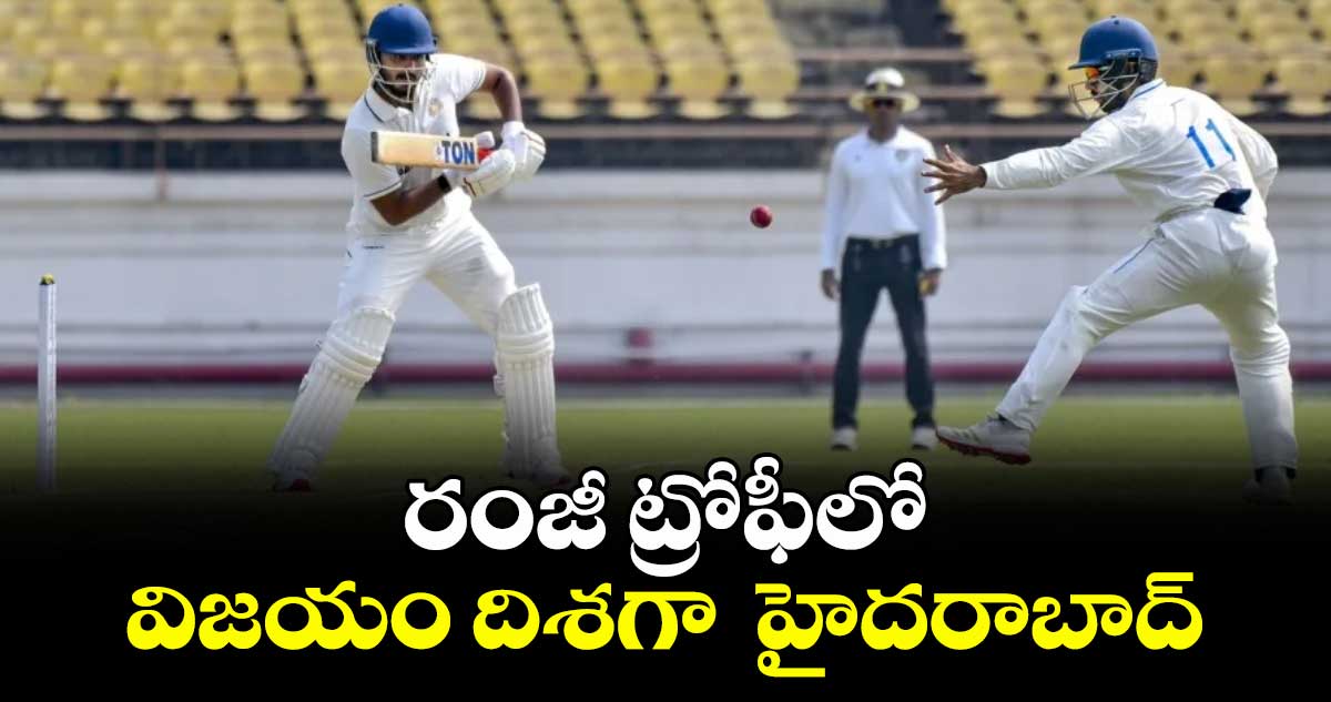హైదరాబాద్, వెలుగు: రంజీ ట్రోఫీలో తమ చివరి మ్యాచ్లో హైదరాబాద్ విజయం దిశగా సాగుతోంది. సికింద్రాబాద్ జింఖానా గ్రౌండ్లో చత్తీస్గఢ్తో జరుగుతున్న గ్రూప్–డి మ్యాచ్లో కె. హిమతేజ (125 బ్యాటింగ్), అభిరథ్ రెడ్డి (121) సెంచరీలతో విజృంభించడంతో రెండో రోజు, శుక్రవారం చివరకు తొలి ఇన్నింగ్స్లో 415/4 స్కోరు చేసింది. ఇప్పటికే 132 రన్స్ భారీ ఆధిక్యం దక్కించుకుంది. ఓవర్నైట్ స్కోరు 56/0తో ఆట కొనసాగించిన జట్టుకు ఓపెనర్లు అమన్ రావు (52), అభిరథ్ తొలి వికెట్కు 96 రన్స్ జోడించి మంచి పునాది వేశారు. కెరీర్లో తొలి ఫస్ట్ క్లాస్ ఫిఫ్టీ తర్వాత అమన్ ఔటవగా.. రాహుల్ సింగ్ (39)తో రెండో వికెట్కు 46 రన్స్ జోడించిన అభిరథ్, హిమతేజ ప్రత్యర్థి బౌలర్లను ఓ ఆటాడుకున్నారు. ఈ ఇద్దరూ మూడో వికెట్కు 147 రన్స్ పార్ట్నర్షిప్ నెలకొల్పారు..ఈ క్రమంలో సెంచరీలు పూర్తి చేసుకున్నారు. రాహుల్ రాదేశ్ (18) ఫెయిలైనా.. ప్రజ్ఞయ్ రెడ్డి (52 బ్యాటింగ్) ఫిఫ్టీ పూర్తి చేసుకొని హిమతేజతో కలిసి అజేయంగా నిలిచాడు. అంతకుముందు తొలి ఇన్నింగ్స్లో చత్తీస్గఢ్ 283 రన్స్కు ఆలౌటైంది.