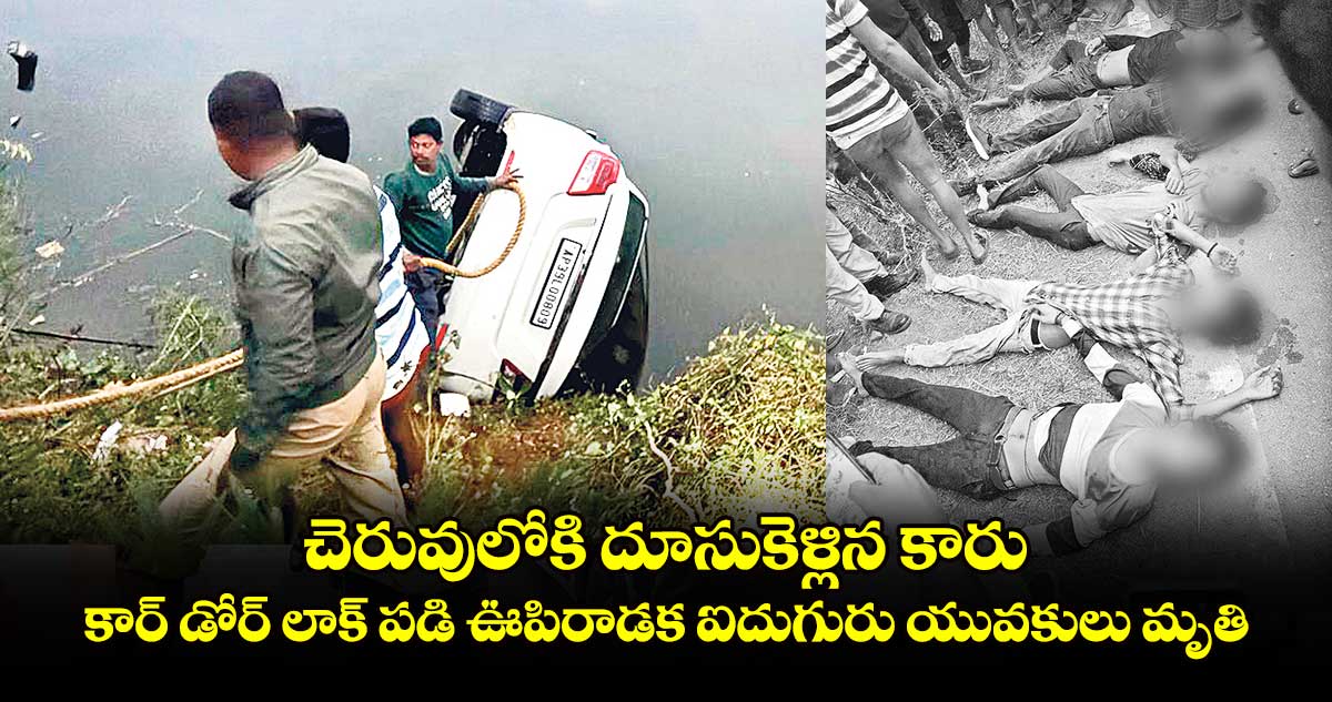 యాదాద్రి/భూదాన్ పోచంపల్లి, వెలుగు: కారు చెరువులోకి దూసుకెళ్లి ఐదుగురు యువకులు మృతి చెందారు. ఈ ఘటన యాదాద్రి జిల్లా భూదాన్ పోచంపల్లి మండలం జలాల్ పూర్లో జరిగింది. హైదరాబాద్ ఎల్బీనగర్ లోని ఆర్టీసీ కాలనీకి చెందిన వంశీ గౌడ్ (23), దిఘ్నేశ్(22), ఇంద్రపల్లి హర్షవర్ధన్(21), బాలు (19), జెల్ల వినయ్ (20)తో పాటు బోడుప్పల్ కు చెందిన మేడబోయిన మణికంఠ స్నేహితులు. వీరందరూ జాలీ ట్రిప్ కోసం శుక్రవారం రాత్రి 12 గంటలకు ఇండ్ల నుంచి బయలుదేరారు. బయటకు వెళ్తున్న విషయం పేరెంట్స్కు కూడా చెప్పలేదు. వీళ్లందరూ స్విఫ్ట్ డిజైర్ కారులో బయలుదేరి, మార్గమధ్యలో మద్యంసేవించారు. అనంతరం భోజనం చేయడానికి జాతీయ రహదారిపై హోటల్ను వెతుక్కుంటూ తెల్లారేదాకా కారులో తిరిగారు. భూదాన్ పోచంపల్లిలో ఈత కల్లు బాగుంటుందని, తాగి వెళ్దామని వారిలో ఒకరు శనివారం తెల్లవారుజామున 4 గంటల సమయంలో చెప్పారు. దీంతో పోచంపల్లి బయల్దేరారు. అప్పటికే మద్యం తాగినందున అందరూ మత్తులో ఉన్నారు. ఆ మత్తులోనే వంశీ కారును డ్రైవ్ చేస్తుండగా పక్కనే మణికంఠ కూర్చున్నాడు.