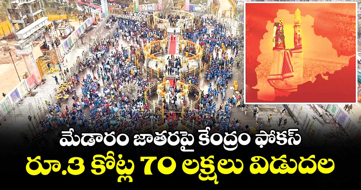 హైదరాబాద్: గిరిజన కుంభమేళాగా ప్రసిద్ధి చెందిన ఆసియాలోనే అతిపెద్ద గిరిజన పండుగ మేడారం జాతరకు కేంద్ర ప్రభుత్వం నిధులు విడుదల చేసింది. కేంద్ర బొగ్గు, గనుల శాఖ మంత్రి కిషన్ రెడ్డి చొరవతో కేంద్ర పర్యాటక మంత్రిత్వ, గిరిజన మంత్రిత్వ శాఖలు రూ.3 కోట్ల 70లక్షలు విడుదల చేశాయి.