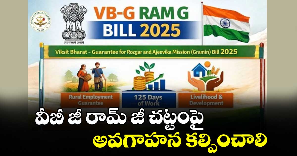 హైదరాబాద్, వెలుగు: మహాత్మా గాంధీ జాతీయ గ్రామీణ ఉపాధి హామీ చట్టం స్థానంలో కేంద్రం తీసుకొచ్చిన ‘వికసిత్ భారత్ – గ్యారంటీ ఫర్ రోజ్ గార్ అండ్ అజీవిక మిషన్ (గ్రామీణ్): వీబీ జీ రామ్ జీ చట్టం–2025’పై ప్రజలకు అవగాహన కల్పించాలని కేంద్ర ప్రభుత్వం రాష్ట్రాన్ని ఆదేశించింది. ఈ మేరకు కేంద్ర పీఆర్, ఆర్డీ శాఖల కార్యదర్శులు రాష్ట్ర సీఎస్కు లేఖ రాశారు. ఈ కొత్త చట్టంలోని కీలక అంశాలు, ప్రజలకు సంక్రమించే చట్టపరమైన హక్కులపై విస్తృత అవగాహన కల్పించాలని ఆదేశించారు.