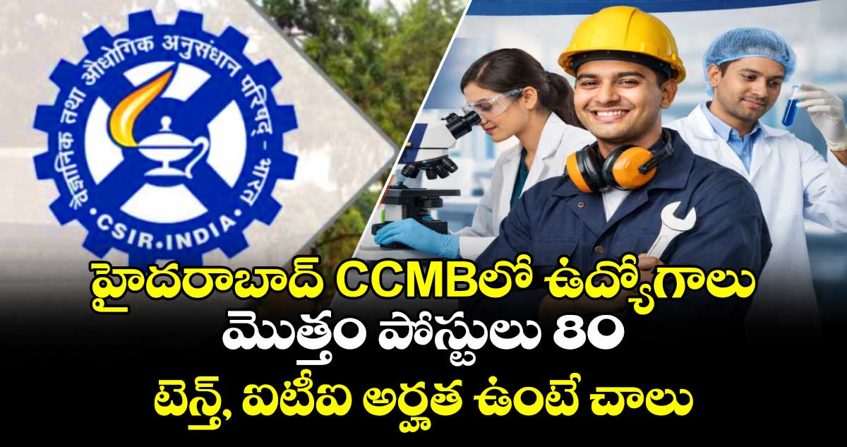 సెంటర్ ఫర్ సెల్యులార్ అండ్ మాలిక్యులర్ బయాలజీ (CSIR CCMB) టెక్నీషియన్, టెక్నికల్ అసిస్టెంట్, ఇతర పోస్టుల భర్తీకి నోటిఫికేషన్ విడుదల చేసింది. ఆసక్తి, అర్హత గల అభ్యర్థులు ఆన్లైన్లో అప్లై చేసుకోవచ్చు. అప్లికేషన్ సమర్పించడానికి చివరి తేదీ ఫిబ్రవరి 23.