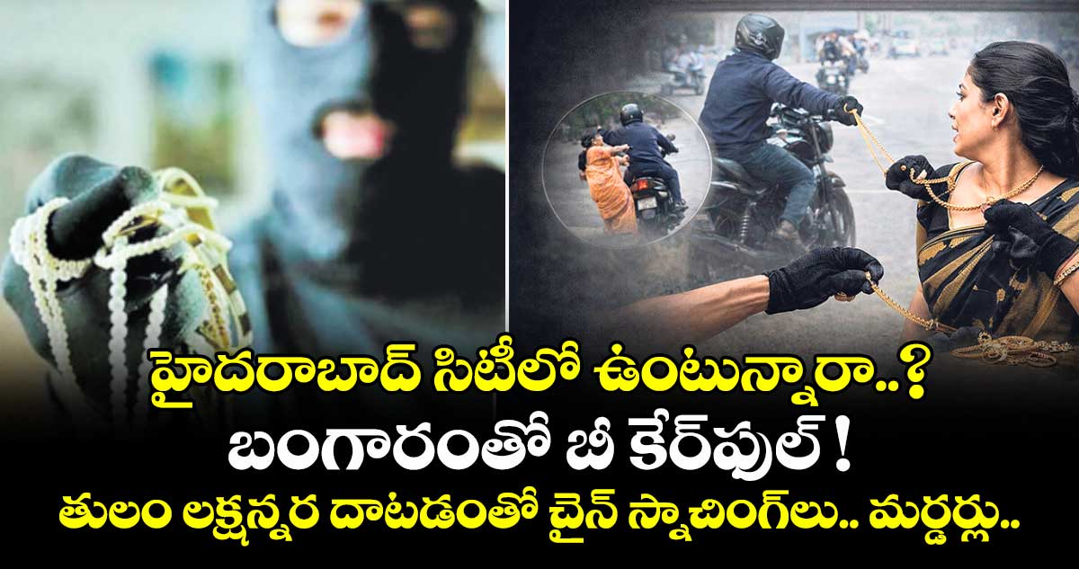 హైదరాబాద్, వెలుగు: రోజురోజుకూ పెరుగుతున్న బంగారం, వెండి ధరలు.. మహిళకు ప్రాణాంతకంగా మారుతున్నాయి. తులం బంగారం రూ.1.61 లక్షలకు చేరడంతో అంతర్రాష్ట్ర ముఠాలతోపాటు స్థానిక దొంగలు మహిళలను లక్ష్యంగా చేసుకుంటున్నారు. ఒక్క స్నాచింగ్ చేస్తే తక్కువలో తక్కువ రూ.2 నుంచి రూ.3 లక్షల దాకా చేతికి అందుతుండడంతో చైన్స్నాచర్లు రెచ్చిపోతున్నారు. బైకులపై మెరుపు వేగంతో వచ్చి ఇంటి ముందు ముగ్గులు వేస్తున్న మహిళలుసహా రోడ్డుపై నడిచివెళ్లే వారి మెడలోంచి పుస్తెల తాళ్లు, చైన్లు తెంపుకెళ్తున్నారు. పట్ట పగలే రెచ్చిపోతున్న దొంగలు.. అడ్డొస్తే హత్య చేసేందుకూ వెనుకాడడం లేదు.