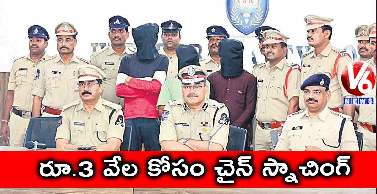 నిందితులను కాచిగూడ రైల్వేస్టేషన్ సమీపంలోని జైన మందిర్ వద్ద పోలీసులు అదుపులోకి తీసుకున్నట్టు సీపీ అంజనీకుమార్ తెలిపారు. నిందితుల దగ్గరి నుంచి కొట్టేసిన పుస్తెల తాడు, బైక్ స్వాధీనం చేసుకున్నామన్నారు. యువత ఈజ్ మనీ కోసం చెడు దారులు పట్టొద్దని..కేసుల్లో చిక్కకుంటే జైలు శిక్ష తప్పదని సీపీ హెచ్చరించారు. సిటీలో సీసీ కెమెరాలు సక్సెస్ అయ్యాయని..ఈ చైన్ స్నాచింగ్ తో పాటు చాలా కేసులను సీసీ ఫుటేజ్ తో సాయంతో ఛేదించామన్నారు. సిటిజన్లు తమ సెక్యూరిటీ కోసం సీసీ కెమెరాలను ఏర్పాటు చేసుకోవాలని ఆయన సూచించారు.