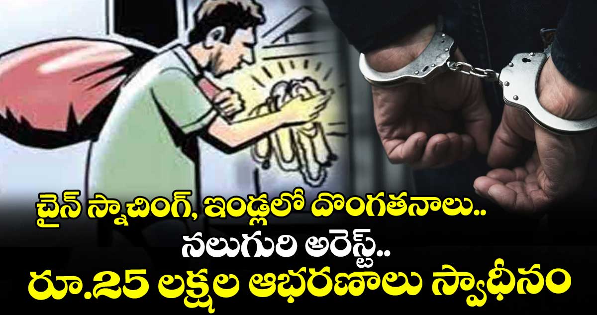 ఈ క్రమంలో వరంగల్ మట్టెవాడ పీఎస్ పరిధిలో మొదట ఓ బైక్ చోరీ చేసి దానిపై తిరుగుతూ దొంగతనాలు చేశారు. హనుమకొండ, కేయూసీ పరిధిలో ఒకటి , ఏపీలోని కర్నూల్ లో మూడు చైన్ స్నాచింగ్ లు చేశారు. వీరినుంచి రూ.15 లక్షల 20 వేల విలువైన 95 గ్రాముల బంగారు అభరణాలు పోలీసులు స్వాధీనం చేసుకున్నారు.