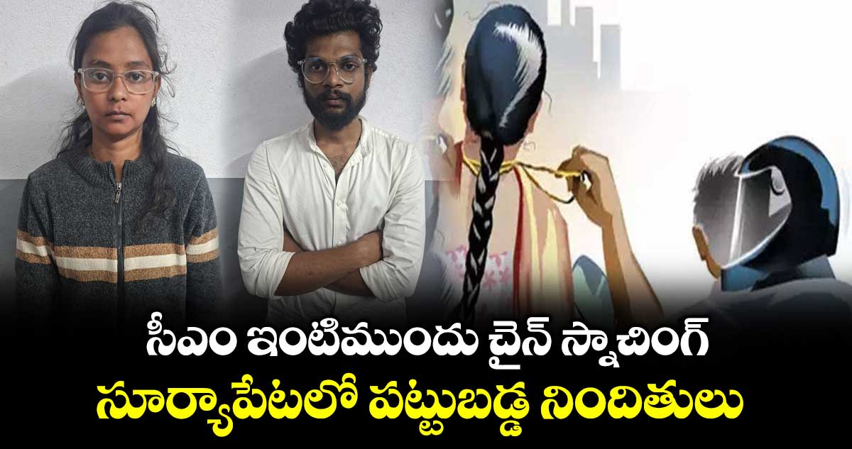 సీఎం ఇంటి పరిసరాలు ఎలా ఉంటాయి..? టైట్ సెక్యూరిటీతో ఎప్పటికప్పుడు చెకింగ్స్ తో.. ఎప్పుడూ మూడో కన్ను గమనిస్తూనే ఉంటుంది ఆ ఏరియాలో. అలాంటిది సీఎం ఇంటి ముందే చైన్ స్నాచింగ్ కు పాల్పడ్డారు ఓ యువతీ యువకుడు. దోచుకున్న నగలతో పరారైన జంట.. ఆంధ్రప్రదేశ్ లోని తమ సొంత గ్రామానికి వెళ్తుండగా సూర్యాపేటలో పోలీసులకు చిక్కారు. ఈ ఘటనలకు సంబంధించిన వివరాలు ఇలా ఉన్నాయి.
