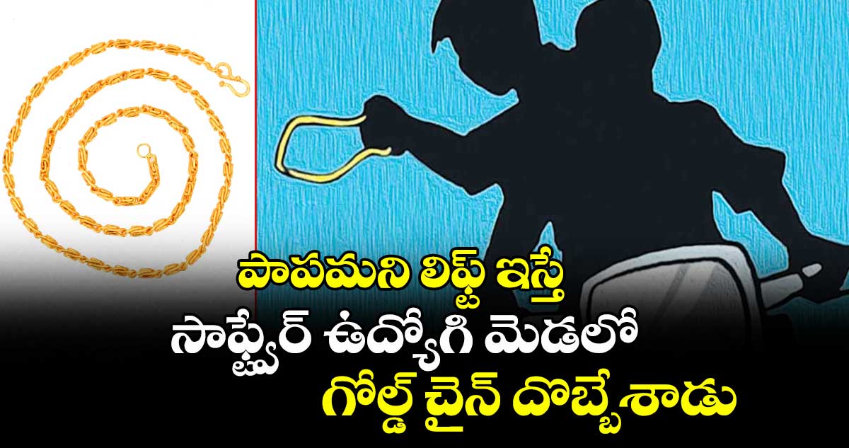 మంచి చేయాలని చూసిన కొన్నిసార్లు దురదృష్టం వెంటాడుతోంది.. ఇందుకు ఈ ఘటనే సాక్ష్యం. ఓ సాఫ్ట్ వేర్ ఉద్యోగి మంచి మనసుతో లిఫ్ట్ ఇస్తే 18 తులాల గోల్డ్ చైన్ దొబ్బేశాడు గుర్తు తెలియని వ్యక్తి. ఈ ఘటన తిరుపతి రూరల్ పరిధిలోని చెర్లోపల్లి –జూ పార్కు రోడ్డులో జరిగింది. వివరాల ప్రకారం.. పేరూరు గ్రామానికి చెందిన రఘునాథరెడ్డి సాఫ్ట్ వేర్ ఉద్యోగి.