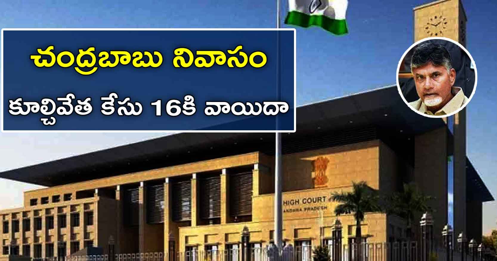 అమరావతి: టీడీపీ నాయకుడు చంద్రబాబు నివాసం ఉంటున్న భవన కూల్చివేతపై ఈ రోజు హైకోర్టులో విచారణ జరిగింది. ఆయన అక్రమ నిర్మాణంలో నివాసముంటున్నాడని గత శుక్రవారమే ఇల్లు ఖాళీ చేయాలంటూ సీఆర్డీఏ అధికారులు నోటీసులు ఇచ్చారు. ఆ నోటీసును సవాలు చేస్తూ హై కోర్టులో లింగమనేని రమేష్ అనే వ్యక్తి పిటిషన్ దాఖలు చేశారు.