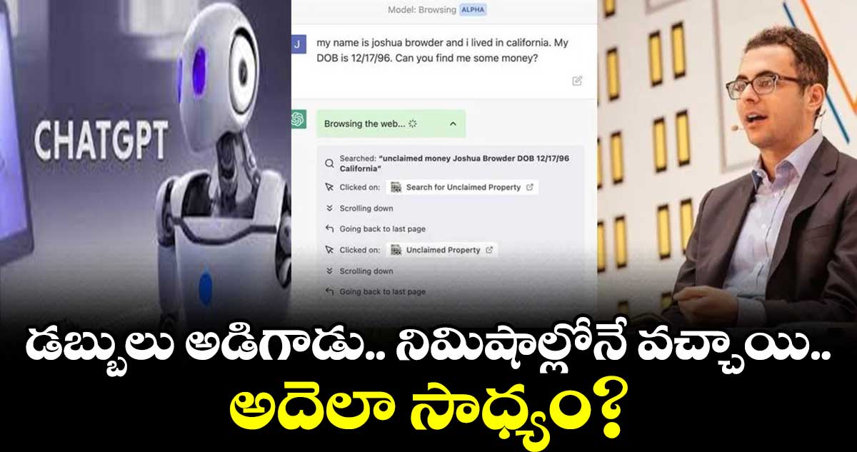 సాంకేతిక రంగంలో ఆర్టిఫిషియల్ ఇంటెలిజెన్స్ వచ్చిన తర్వాత టెక్నాలజీ రంగంలో అనేక మార్పులు చోటుచేసుకుంటున్నాయి. ఇటీవలి చాట్ జీపీటీ కొన్ని రోజుల్లో బాగా ప్రాచుర్యం పొందింది. తన పనితీరుతో రోజూ వార్తల్లో నిలుస్తోంది. అయితే, ఓ వ్యక్తి చాట్జీపీటీని డబ్బు అడగడంతో నిమిషాల వ్యవధిలోనే డబ్బు అందింది. వివరాల్లోకి వెళితే అమెరికాకు చెందిన జాషువా బ్రౌడర్కు డబ్బు అవసరం. అతని పేరు, పుట్టిన తేదీ నివాసం చెబుతూ డబ్బు అడగమనిచాట్ జీపీటీని కోరింది. వెంటనే రంగంలోకి దిగిన చాట్ జీపీటీ అతను ఇంకా క్లెయిమ్ చేయని ఆఫర్ను ఆన్లైన్లో వెతికిపెట్టింది. ఈ ఘటన కాలిఫోర్నియాలో జరిగింది.