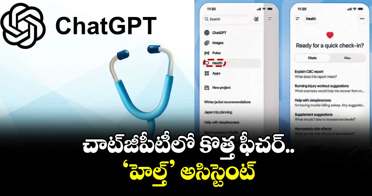 చాట్జీపీటీ యూజర్ల కోసం హెల్త్ ఫీచర్ను తీసుకురానుంది. ఓపెన్ ఏఐ తన చాట్బాట్లో ‘హెల్త్’ ట్యాబ్ను యాడ్ చేసింది. ఇది హెల్త్కి సంబంధించిన ప్రశ్నలకు సమాధానాలు ఇస్తుంది. ఇది హెల్త్ అసిస్టెంట్లా పనిచేస్తుంది. ల్యాబ్ రిపోర్ట్స్ను ఇందులో అప్లోడ్ చేస్తే మెడికల్ టెర్మ్స్ను ఈజీగా వివరిస్తుంది. అలాగే డాక్టర్ని కలిసినప్పుడు ఎలాంటి ప్రశ్నలు అడగాలి? ఇన్సూరెన్స్ పాలసీలో ఎలాంటి బెనిఫిట్స్ ఉన్నాయి? వంటివి తెలియజేస్తుంది.