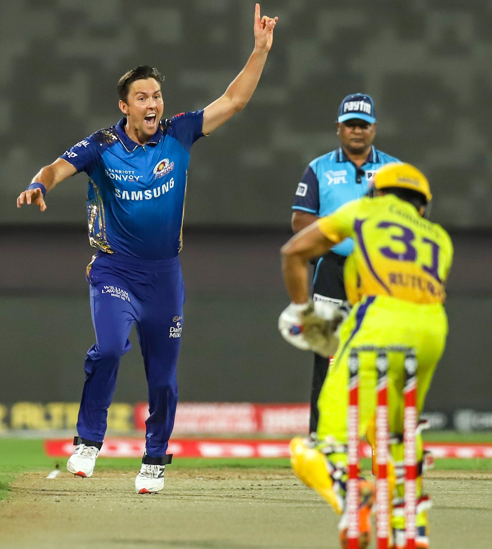 ముంబై బౌలర్లలో ట్రెంట్ బౌల్ట్ 4 వికెట్లు తీయగా, బుమ్రా, రాహుల్ చాహర్ చెరో రెండు వికెట్లు పడగొట్టగా నాథల్ కౌల్టర్ నైల్ కు ఒక వికెట్ దక్కింది.