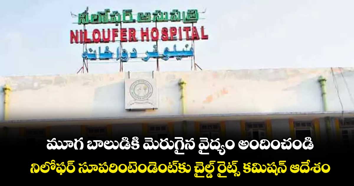 హైదరాబాద్, వెలుగు: మూగ బాలుడి ఘటన పై రాష్ట్ర బాలల హక్కుల పరిరక్షణ కమిషన్ (టీజీఎస్సీపీసీఆర్) సీరియస్గా స్పందించింది. పత్రికల్లో వచ్చిన వార్తను సుమోటోగా స్వీకరించిన చైర్ పర్సన్ కొత్తకోట సీతా దయాకర్ రెడ్డి వెంటనే చర్యలకు ఉపక్రమించారు. బాలుడికి నిలోఫర్ హాస్పిటట్లో ఉత్తమ వైద్యం అందించాలని సూపరింటెండెంట్ను ఆదేశించారు.