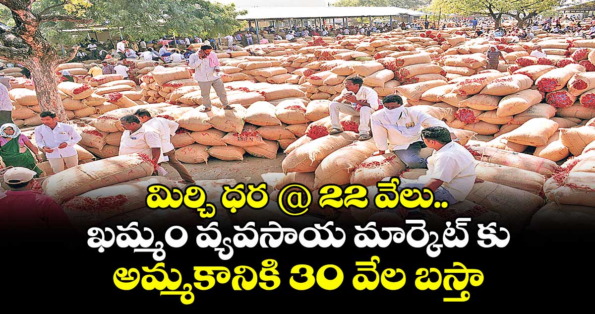 ఖమ్మం టౌన్,వెలుగు : ఖమ్మం వ్యవసాయ మార్కెట్ లో సోమవారం ఎర్ర బంగారానికి(తేజ మిర్చికి) క్వింటా రూ.22 వేలు ధర పలికింది.ఆదివారం సెలవు కావడంతో సోమవారం మార్కెట్ కు రైతులు 30 వేల బస్తా అమ్మకానికి తెచ్చారు.ఇంచుమించుగా తేజ మిర్చికి సమానంగా ఏసీ మిర్చి క్వింటా ధర రూ.21,500ల ధర పలికింది.ఈ ఏడాది పంట దిగుబడి తక్కువగా ఉండటం,మార్కెట్ కు బెస్ట్ క్వాలిటీ మిర్చి రావడం...ఇతర రాష్ట్రాల నుంచి అర్దర్లు రావడం, చైనా నుంచి అర్దర్లు రావచ్చనే ఆశభావంతో వ్యాపారులు ధర పెంచి మిర్చి కొనుగోళ్లు చేస్తున్నారు.