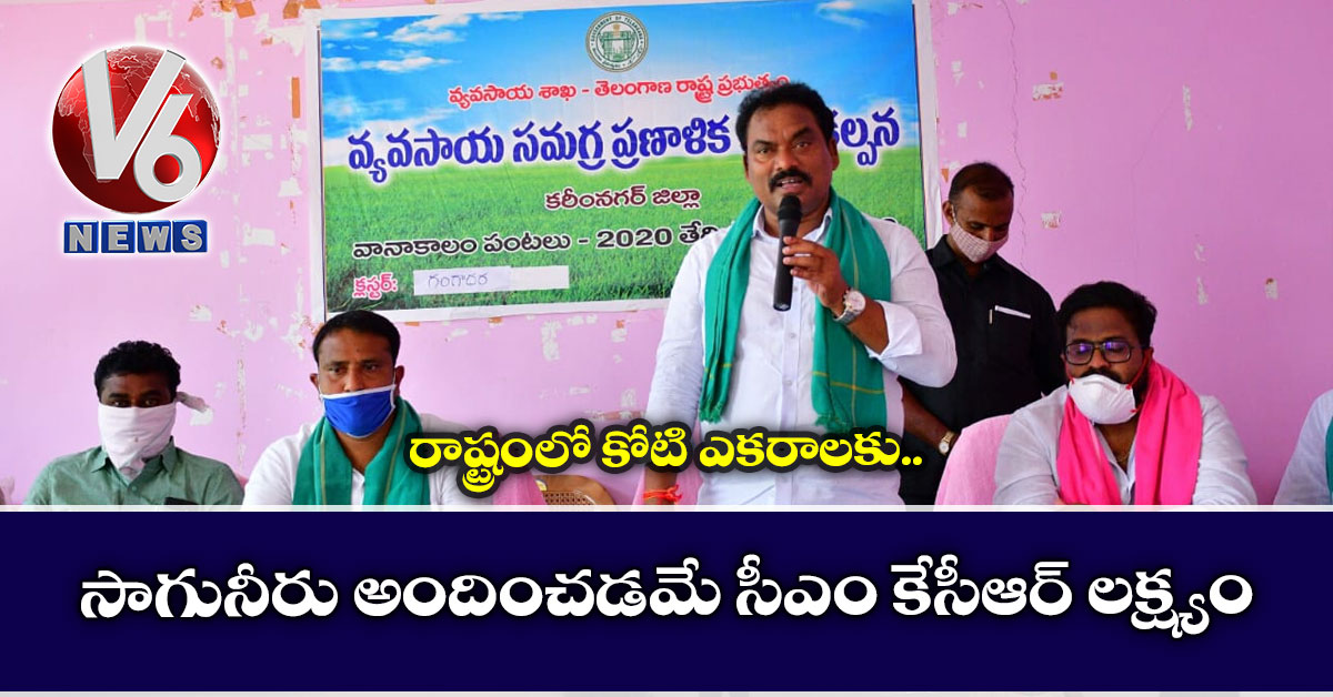 చొప్పదండి నియోజకవర్గం లోని ప్రతి చెరువు చివరి ఆయకట్టు వరకు నీరు అందేలా చూడడమే ముఖ్యమంత్రి కేసీఆర్ ముఖ్య ఉద్దేశమని ఎమ్మెల్యే సుంకె రవిశంకర్ తెలిపారు. మంగళవారం సమగ్ర వ్యవసాయ ప్రణాళిక రూపకల్పన కార్యక్రమంలో భాగంగా మీడియాతో మాట్లాడుతూ.. రాష్ట్రంలో కోటి ఎకరాలకు సాగు నీరు అందించడమే ముఖ్యమంత్రి కేసీఆర్ గారి లక్ష్యం అని తెలిపారు.
