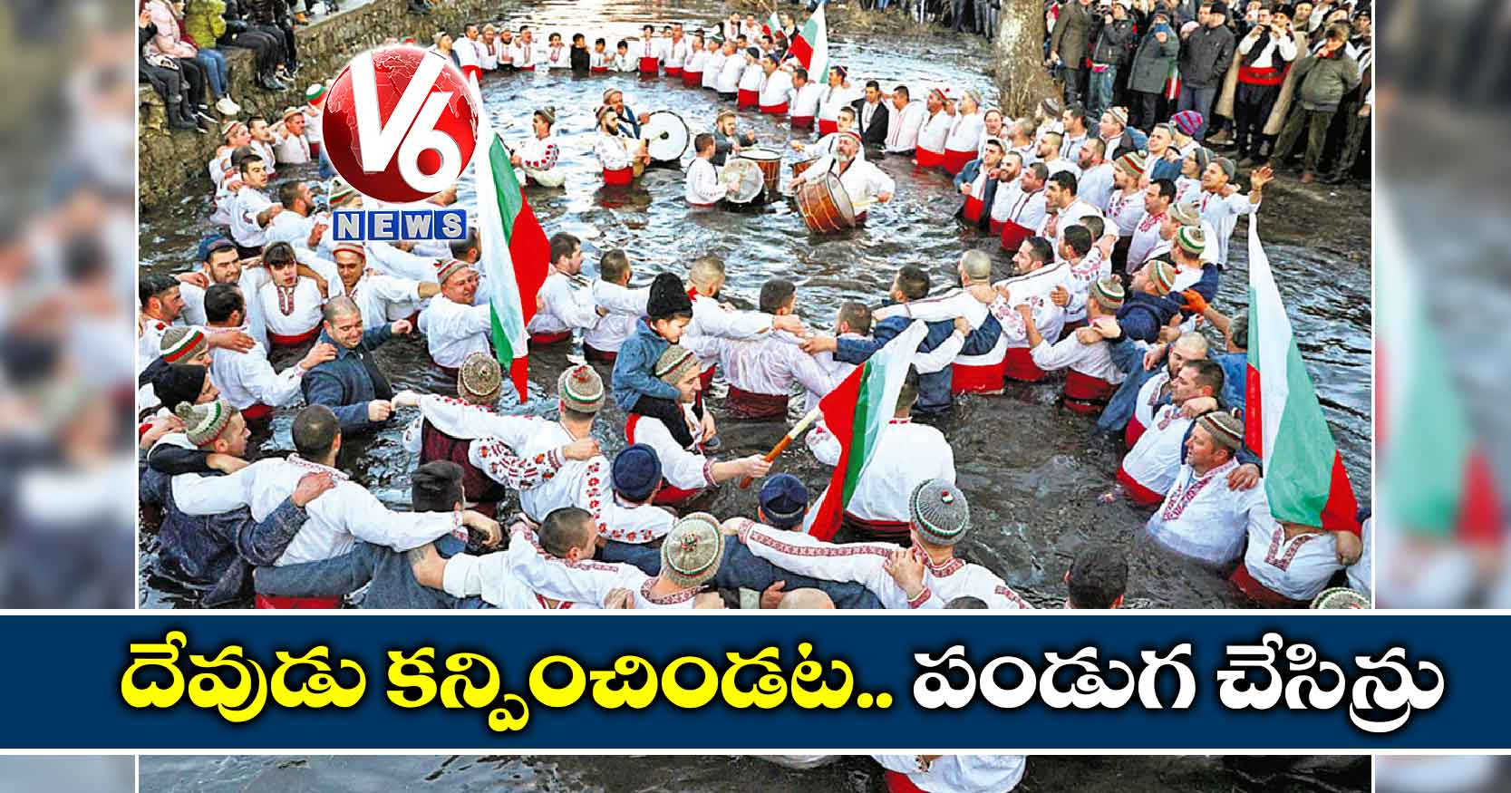 వీళ్లంతా ఏం చేస్తున్నరో తెలుసా? డ్యాన్స్ చేస్తున్నరు. అవును, నిజంగానే డ్యాన్స్ చేస్తున్నరు. వెస్టర్న్ క్రిస్టియన్లు ఇపిఫనీ డే అనే ఓ పండుగ చేస్తరు. ఆ పండుగలో భాగంగానే ఇట్ల సల్లటి నీళ్లలోకి దిగి అందరూ కలిసి డ్యాన్స్ చేసిన్రు. బల్గేరియాలోని కలోఫర్లో జరిగిన ఉత్సవాల్లో భాగంగా టుంజా నదిలోకి దిగిన్రు. ఏసు క్రీస్తు పుట్టి, జనానికి కన్పించాడని అక్కడి వాళ్ల నమ్మకం. దాన్నే ఇపిఫనీ డే పేరిట వెస్టర్న్ దేశాల జనాలు ఏటా ఘనంగా ఉత్సవాలు చేసుకుంటరు. ఈ ఏడాది జనవరి 6న తీసిన ఫొటో ఇది.