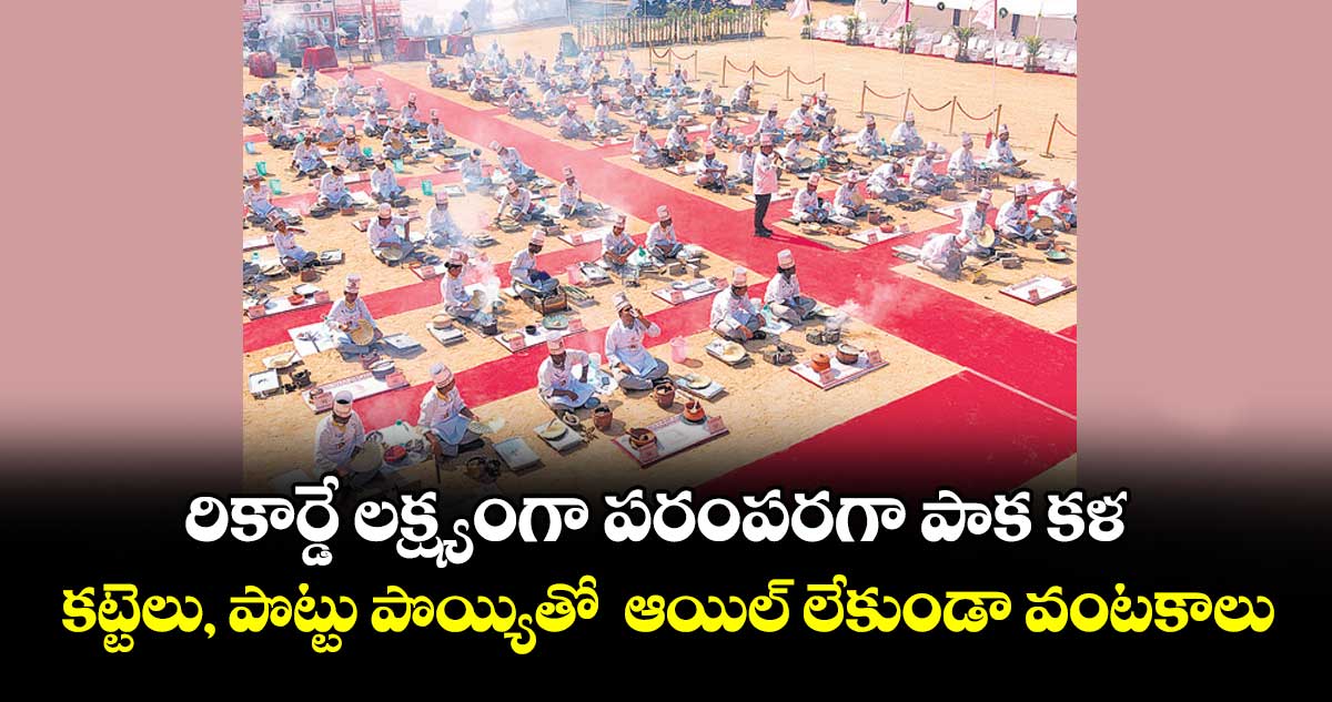 పద్మారావునగర్, వెలుగు: క్రిస్మస్ సందర్భంగా బేగంపేటలోని కలవరి అకాడమీ ఆఫ్ ఇండియా ‘పరంపరగా పాక కళ’ పేరుతో వినూత్న కార్యక్రమాన్ని నిర్వహించి మరో ప్రపంచ రికార్డుకు సిద్ధమైంది. ఇప్పటికే ఐదు ప్రపంచ రికార్డులు సాధించిన ఈ సంస్థ.. తాతల కాలంలోని సంప్రదాయ వంట విధానాలను యువతరానికి పరిచయం చేసేందుకు ఈ ఈవెంట్ నిర్వహించింది. సోమవారం104 మంది విద్యార్థులు 104 రకాల పురాతన సంప్రదాయ వంటకాలను తయారు చేసి ప్రేక్షకులను ఆకట్టుకున్నారు. ఎలాంటి గ్యాస్ స్టవ్ లేకుండా కేవలం కట్టెల పొయ్యి, పొట్టు పొయ్యి, మట్టి పొయ్యి, ఇసుక, సాల్టు వంటి సహజ వనరులతోనే వంటకాలు సిద్ధం చేశారు.