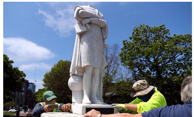 న్యూఢిల్లీ: అమెరికాలో జార్జ్ ఫ్లాయిడ్ అనే నల్ల జాతీయుడి మృతితో ప్రపంచ వ్యాప్తంగా జాత్యాహంకార వ్యతిరేక నిరసనలు వెల్లువెత్తుతున్న సంగతి తెలిసిందే. ఇప్పుడు ఈ సెగ ఇంగ్లండ్లోని బోస్టన్కూ పాకింది. బోస్టన్లో ఇటాలియన్ అన్వేషకుడు క్రిస్టోఫర్ కొలంబస్ విగ్రహం తలను గుర్తు తెలియని వ్యక్తులు ధ్వంసం చేశారని పోలీసులు తెలిపారు. ఈ ఘటనపై విచారణ కొనసాగిస్తున్నామని, ఇప్పటివరకు ఎవ్వరినీ అరెస్ట్ చేయలేదని చెప్పారు. బోస్టన్తోపాటు మరోచోట కూడా కొలంబస్ స్టాచ్యూను నిరసనకారులు పడగొట్టారు. డౌన్టౌన్ మియామిలో ఉన్న కొలంబస్ విగ్రహాన్ని గుర్తు తెలియని వ్యక్తులు ధ్వంసం చేశారు. రేసిజం వ్యతిరేక నిరసనల నేపథ్యంలో వలసవాదులు, బానిసలను స్మరించే శిల్పాలను తొలగించాలని నిరసనకారులు పిలుపునిచ్చారు.