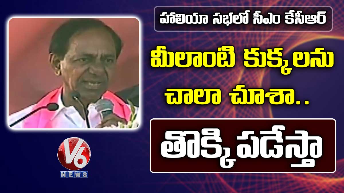హాలియా: పిచ్చి కార్యక్రమాలు చేస్తే తొక్కిపడేస్తామన్నారు సీఎం కేసీఆర్. బుధవారం హాలియా సభలో కేసీఆర్ మాట్లాడుతుండగా.. కొందరు నిరసనలు తెలిపారు. అయితే వారిపై సీరియస్ అయిన కేసీఆర్.. మీ లాంటి కుక్కలను చాలామందిని చూశామన్నారు. అలాగే కొత్త బిచ్చగాళ్లలా బీజేపీ నేతలు మాట్లాడుతున్నారని.. పిచ్చిగా మాట్లాడితే తొక్కి పడేస్తామన్నారు. మేం తలుచుకుంటే బీజేపీ దుమ్ము దుమ్ము అయితదన్నారు. ఇక్కడ ఎవ్వరూ చేతులు ముడుచుకుని కూర్చోలేదని.. టీఆర్ఎస్ అంటే వీరుల పార్టీ.. వీపు చూపించే పార్టీ కాదన్నారు సీఎం కేసీఆర్. కాంగ్రెస్ కు తెలంగాణ పేరెత్తే అర్హత లేదన్న సీఎం.. రాష్ట్రాన్ని మూడు ముక్కలు చేసింది కాంగ్రెస్సే అన్నారు. ఢిల్లీ వాళ్లు నామినేట్ చేస్తే వచ్చిన పార్టీ తమది కాదని.. పిచ్చి కార్యక్రమాలు చేస్తే తొక్కి పడేస్తామన్నారు. ముళ్లు ఎక్కువ ఉంటే పొల్లు పొల్లు చేస్తామంటూ సీరియస్ అయ్యారు సీఎం కేసీఆర్.