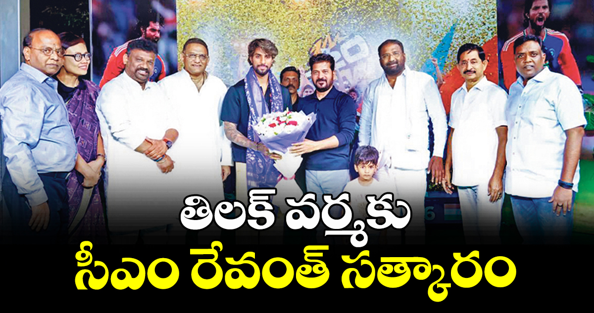హైదరాబాద్, వెలుగు: టీ20 వరల్డ్ కప్ విన్నింగ్ టీమ్ మెంబర్ హైదరాబాదీ తిలక్ వర్మను సీఎం రేవంత్ రెడ్డి సత్కరించారు. వరల్డ్ కప్ నెగ్గిన తర్వాత సిటీకి తిరిగొచ్చిన తిలక్ సోమవారం రాత్రి జూబ్లీహిల్స్ నివాసంలో సీఎంను మర్యాదపూర్వకంగా కలిశాడు.