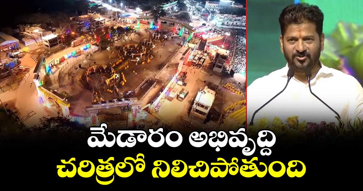 మేడారం అభివృద్ది చరిత్రలో నిలిచి పోతుందన్నారు సీఎం రేవంత్ రెడ్డి. 800ఏళ్ల చరిత్ర గలిగిన వనదేవతల మేడారం అభివృద్ది పనులు చేసిన ఎంతో సంతృప్తి నిచ్చిందన్నారు. పనులకు సహకరించిన ప్రతి ఒక్కరికి కృతజ్ణతలు తెలిపారు. మేడారం జాతరకు వచ్చే భక్తులకు ఎటువంటి ఇబ్బందులు లేకుండా అన్ని ఏర్పాట్లు చేశామన్నారు. రామప్పనుంచి లక్కవరం వరకు పైపులైన్ ద్వారా జంపన్న వాగుకు నీళ్లిస్తామన్నారు.