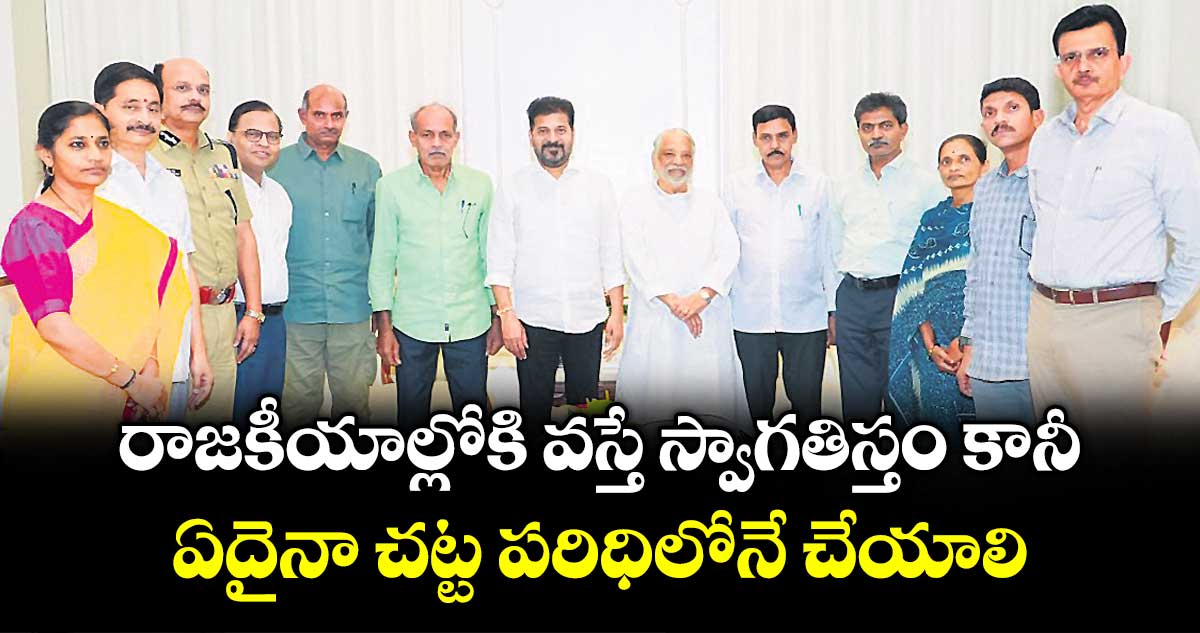 హైదరాబాద్, వెలుగు: ‘మీరు ప్రత్యక్ష రాజకీయాల్లోకి వస్తే ప్రభుత్వం తరఫున స్వాగతిస్తాం.. కానీ, ఏది చేసినా చట్టపరిధిలో, రాజ్యాంగబద్ధంగా చేయండి..’ అని ఇటీవల లొంగిపోయిన మావోయిస్టు అగ్రనేతలకు సీఎం రేవంత్ రెడ్డి సూచించారు. ఇతర రాజకీయ పార్టీల మాదిరిగా ప్రజాసమస్యలు ఏవైనా కూడా తన దృష్టికి తీసుకురావొచ్చని వారికి చెప్పారు. సరెండర్ అయిన నక్సల్స్ సాధారణ జీవితం గడిపేందుకు ప్రభుత్వపరంగా అన్ని విధాలా సహకరిస్తామని, మెరుగైన పునరావాస ప్యాకేజీ అందజేస్తామని హామీ ఇచ్చారు. ఇటీవల లొంగిపోయిన మావోయిస్టు అగ్ర నేతలతో సీఎం సెక్రటేరియెట్లో శుక్రవారం సమావేశమయ్యారు. వీరిలో తిప్పిరి తిరుపతి(దేవ్ జీ), మల్లా రాజిరెడ్డి(సంగ్రామ్), పుల్లూరి ప్రసాదరావు(చంద్రన్న), పోతుల కల్పన(సుజాత), బడే చొక్కారావు (దామోదర్) , నూనె నర్సింహా రెడ్డి ఉన్నారు.
