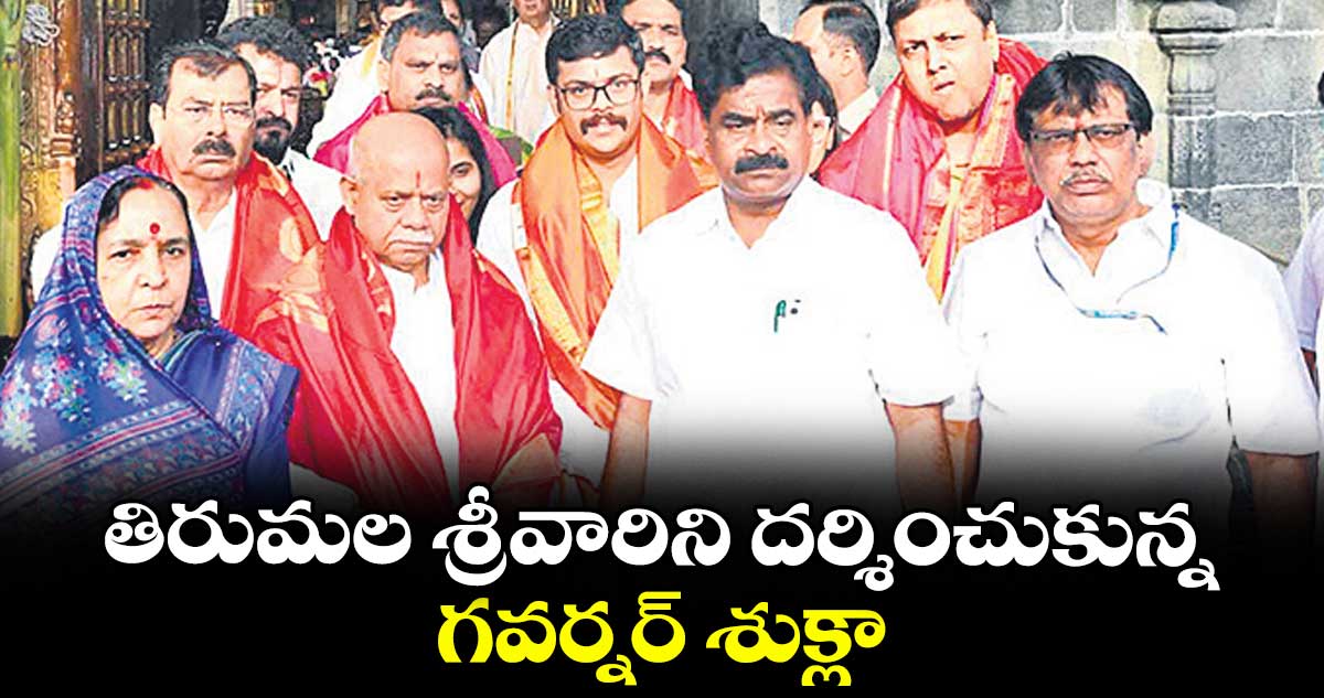 హైదరాబాద్, వెలుగు: తిరుమలలో శ్రీవారిని తెలంగాణ గవర్నర్ శివప్రతాప్ శుక్లా బుధవారం ఉదయం కుటుంబ సమేతంగా దర్శించుకున్నారు. ఆలయ మహాద్వారం వద్దకు చేరుకున్న గవర్నర్కు అధికారులు ఘనంగా స్వాగతం పలికారు. అనంతరం ఆయన తన సతీమణి జానకి శుక్లాతో కలిసి ముందుగా ధ్వజస్తంభానికి మొక్కుకుని, తర్వాత గర్భగుడిలో మూలవిరాట్టును దర్శించుకున్నారు. రంగనాయక మండపంలో వేదపండితులు ఆశీర్వచనాలు అందించగా, ఆలయ అధికారులు శ్రీవారి తీర్థప్రసాదాలు, చిత్రపటం, క్యాలెండర్లు అందజేశారు.