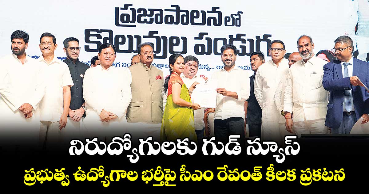 ఏయే శాఖల్లో ఖాళీలు ఉన్నాయో స్వయంగా వివరాలు తెప్పించుకొని జాబ్ క్యాలెండర్ ద్వారా భర్తీ చేస్తున్నారని వివరించారు. ఈ కార్యక్రమంలో మంత్రి అజారుద్దీన్, ప్రభుత్వ సలహాదారులు వేం నరేందర్రెడ్డి, షబ్బీర్ అలీ, ఎంపీ అనిల్ కుమార్ యాదవ్, జీహెచ్ఎంసీ మేయర్ గద్వాల విజయలక్ష్మి, విప్ ఆది శ్రీనివాస్, ఎమ్మెల్యేలు అరెకపూడి గాంధీ, కాలే యాదయ్య, ఎమ్మెల్సీ బల్మూరి వెంకట్, సీఎస్ రామకృష్ణారావు తదితరులు పాల్గొన్నారు.