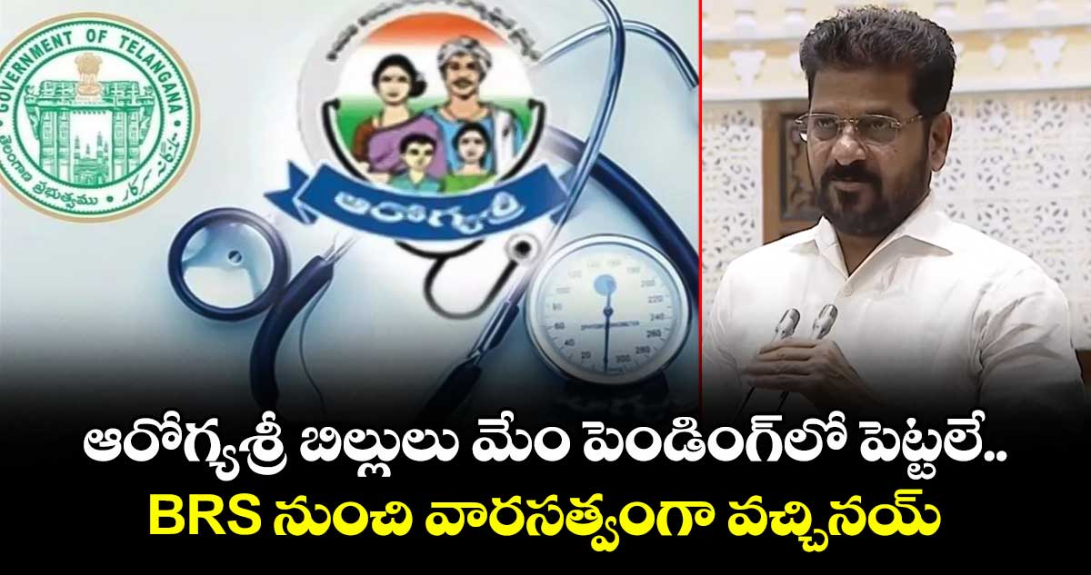 హైదరాబాద్: రాజీవ్ ఆరోగ్యశ్రీ బిల్లులు మేం పెండింగ్లో పెట్టలేదని.. గత బీఆర్ఎస్ ప్రభుత్వం నుంచి మాకు వారసత్వంగా వచ్చాయని సీఎం రేవంత్ రెడ్డి తెలిపారు. గురువారం (మార్చి 26) అసెంబ్లీలో బడ్జెట్ పద్దులపై చర్చ సందర్భంగా సీఎం రేవంత్ రెడ్డి మాట్లాడుతూ.. గత బీఆర్ఎస్ ప్రభుత్వం రూ.627 కోట్ల ఆరోగ్య శ్రీ బిల్లులు బకాయిలు పెట్టిందని చెప్పారు. అందులో రూ.240 కోట్లు ప్రభుత్వ ఆస్పత్రులకు.. రూ.360 కోట్లు ప్రైవేట్ ఆస్పత్రులకు బకాయి ఉందన్నారు.