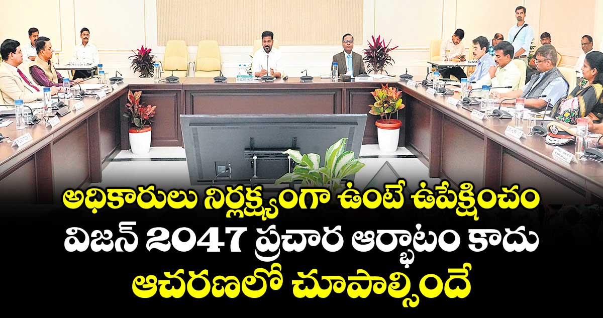 ‘తెలంగాణ రైజింగ్ విజన్ 2047’ అనేది కేవలం ప్రచార ఆర్భాటం కాదని.. దీని అమలులో అధికారులు నిర్లక్ష్యంగా ఉంటే ఉపేక్షించబోమని సీఎం రేవంత్ రెడ్డి హెచ్చరించారు. పనితీరు మార్చుకోకుండా నిర్లక్ష్యంగా ఉంటే.. ‘గరం.. నరం.. బేషరమ్’గా వ్యవహరించాల్సి వస్తుందని అధికారులకు తేల్చి చెప్పారు. మంగళవారం సెక్రటేరియెట్లో దాదాపు మూడు గంటల పాటు ఉన్నతాధికారులతో సీఎం సమావేశమయ్యారు. రాష్ట్ర అభివృద్ధికి రూపొందించిన ‘క్యూర్, ప్యూర్, రేర్’ పాలసీలను పక్కాగా అమలు చేయాలని, ప్రతి ఐఏఎస్ అధికారి నెలలో కనీసం మూడు సార్లు క్షేత్రస్థాయి పర్యటనలకు వెళ్లాలని ఆదేశించారు. రాష్ట్రానికి ఒక భవిష్యత్తు ప్రణాళిక ఉండాలనే ఉద్దేశంతోనే విజన్ 2047 డాక్యుమెంట్ను విడుదల చేశామని సీఎం గుర్తుచేశారు.