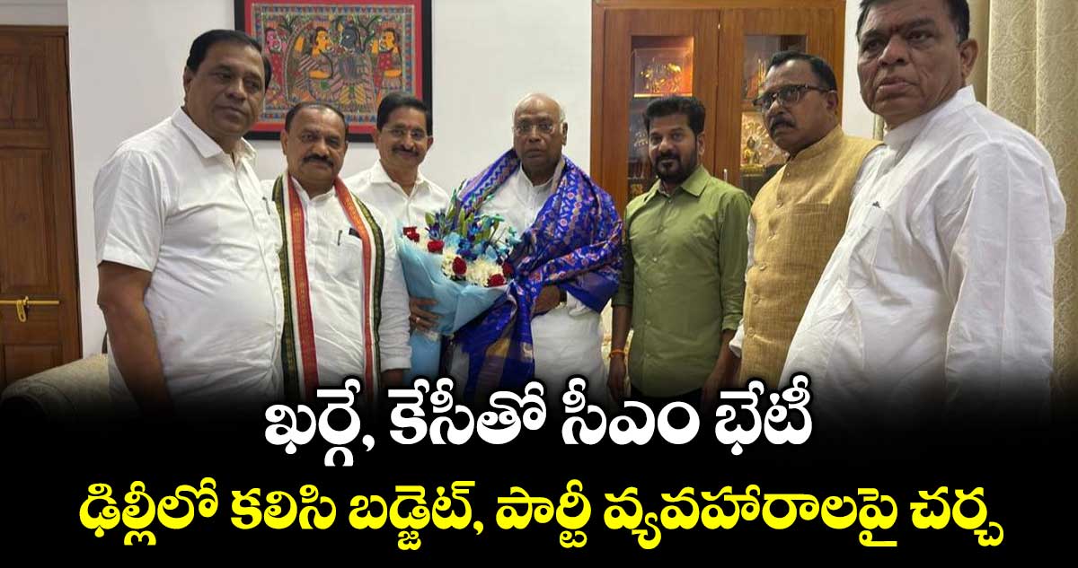 న్యూఢిల్లీ, వెలుగు: తెలంగాణలోని అన్ని వర్గాలకు మేలు చేసేలా ఈ సారి బడ్జెట్ ప్రవేశ పెట్టనున్నట్లు కాంగ్రెస్ జాతీయ అధ్యక్షుడు మల్లికార్జున ఖర్గేకు సీఎం రేవంత్ రెడ్డి తెలిపారు. ప్రజా సంక్షేమంతో పాటు, రాష్ట్ర అభివృద్ధి ప్రభుత్వానికి రెండు కండ్లని వివరించారు. మంగళవారం సాయంత్రం ఢిల్లీ చేరుకున్న సీఎం రేవంత్ రెడ్డి పార్టీ పెద్దలతో సమావేశం అయ్యారు. రాత్రి 9 గంటలకు ఖర్గే నివాసంలో ఆయనతో భేటీ అయ్యారు. సీఎం వెంట పీసీసీ చీఫ్ మహేశ్ కుమార్ గౌడ్, ఎంపీలు మల్లు రవి, సురేశ్ షట్కర్, బలరాం నాయక్, వేం నరేందర్ రెడ్డి ఉన్నారు.