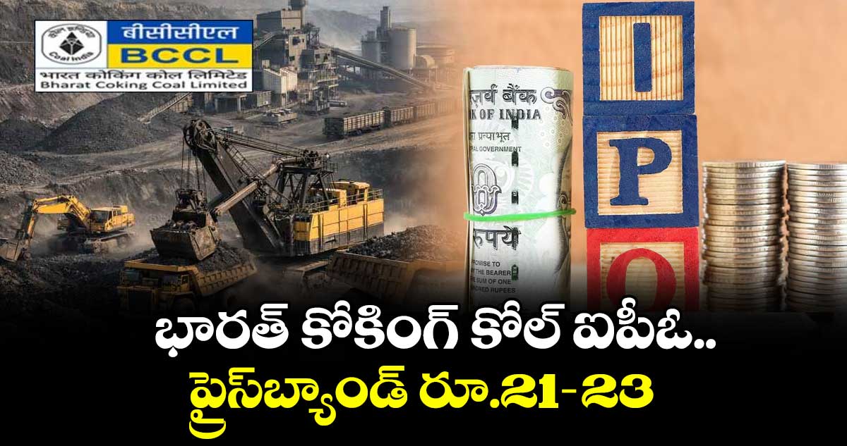 న్యూఢిల్లీ: కోల్ ఇండియా అనుబంధ సంస్థ భారత్ కోకింగ్ కోల్ లిమిటెడ్ తన ఐపీఓ కోసం ప్రైస్బ్యాండ్ ప్రకటించింది. ఒక్కో షేరు ధరను రూ.21 నుంచి రూ.23 గా నిర్ణయించింది. ఈ పబ్లిక్ ఇష్యూ ద్వారా కంపెనీ రూ.1,071 కోట్లు సేకరించాలని లక్ష్యంగా పెట్టుకుంది. దీనివల్ల కంపెనీ మొత్తం విలువ రూ.10,700 కోట్ల పైగా ఉంటుంది. ఈ ఏడాది మార్కెట్లోకి వస్తున్న మొదటి ఐపీఓ ఇదే. జనవరి తొమ్మిది నుంచి 13 వరకు పెట్టుబడిదారులు దరఖాస్తు చేసుకోవచ్చు.