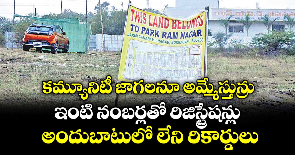 కమ్యూనిటీ డెవలప్మెంట్ కోసం కేటాయించిన భూముల్లో మున్సిపాలిటీలు పార్క్లు, ఆలయాలు, కమ్యూనిటీ హాల్స్ తదితర వాటిని ఏర్పాటు చేయాల్సి ఉంటుంది. కానీ రియల్టర్లు వాటిని కూడా ప్లాట్లుగా చూపించి విక్రయిస్తున్నారు. బోర్గాం, మాధవ్నగర్, మోపాల్ రోడ్, ఆర్టీసీ కాలనీ, ఏకశిలానగర్ ప్రాంతాల్లో కోట్ల రూపాయల విలువైన కమ్యూనిటీ స్థలాలు అమ్ముడైనట్లు ఆరోపణలు ఉన్నాయి. కొనుగోలు అనంతరం కాలనీవాసులకు తెలియడంతో ఆందోళన వ్యక్తం చేస్తున్నారు.