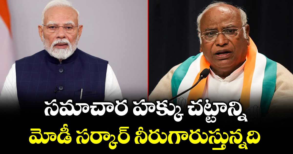 న్యూఢిల్లీ: సమాచార హక్కు చట్టాన్ని మోడీ ప్రభుత్వం క్రమంగా బలహీనపరుస్తోందని కాంగ్రెస్పార్టీ అధ్యక్షుడు మల్లికార్జున ఖర్గే ఆరోపించారు. గురువారం పార్లమెంట్లో సమర్పించిన ఆర్థిక సర్వే 2025-=26లో సమాచార హక్కు చట్టాన్ని పునఃపరిశీలన చేయాలని సూచించిన విషయాన్ని ఉదహరిస్తూ ఆయన ఈ వ్యాఖ్యలు చేశారు.