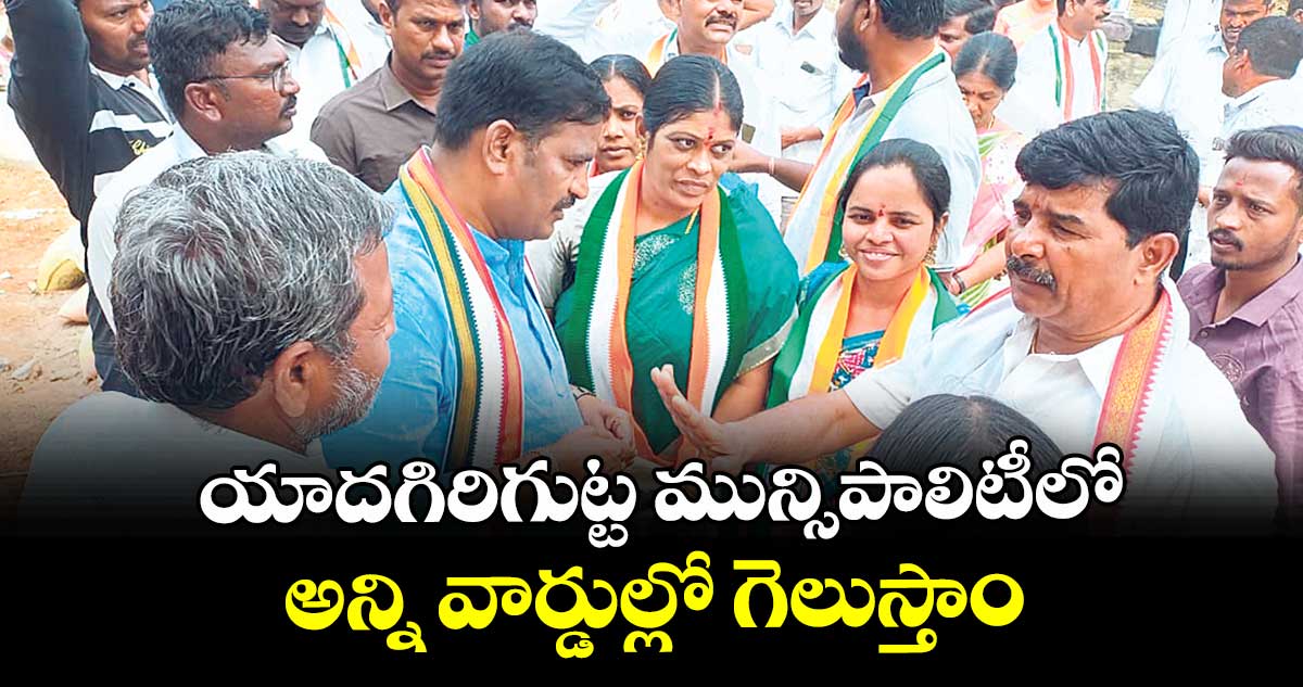 యాదగిరిగుట్ట, వెలుగు: యాదగిరిగుట్ట మున్సిపాలిటీ పరిధిలోని 12 వార్డుల్లో కాంగ్రెస్ అభ్యర్థులు గెలిచి క్లీన్ స్వీప్ చేయబోతున్నామని ప్రభుత్వ విప్, ఆలేరు ఎమ్మెల్యే, డీసీసీ చీఫ్ బీర్ల అయిలయ్య తెలిపారు. యాదగిరిగుట్టలోని 10వ వార్డులో పోటీ చేస్తున్న కాంగ్రెస్ చైర్మన్ అభ్యర్థి గుండ్లపల్లి వాణీ భరత్ గౌడ్, 9వ వార్డు కాంగ్రెస్ అభ్యర్థి సాధునేని ధనలక్ష్మీ మధుకర్ కు మద్దతుగా సోమవారం ప్రచారం నిర్వహించారు. ఇంటింటికీ తిరిగి చేతి గుర్తుకు ఓటేసి కాంగ్రెస్ అభ్యర్థులను గెలిపించాలని ఓటర్లను అభ్యర్థించారు. ఈ సందర్భంగా ఆయన మాట్లాడుతూ.. యాదగిరిగుట్ట పట్టణానికి మళ్ళీ పూర్వ వైభవం తేవాలంటే కాంగ్రెస్ తోనే సాధ్యమని, అందుకే మున్సిపల్ ఎన్నికల్లో కాంగ్రెస్ అభ్యర్థులకు ఓటేసి అభివృద్ధికి పట్టం కట్టాలని కోరారు.