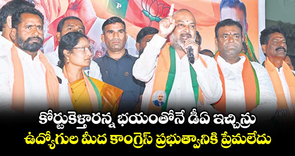 రాజన్న సిరిసిల్ల, వెలుగు : ఉద్యోగులు కోర్టుకు వెళ్తారన్న భయంతోనే ప్రభుత్వం ఒక డీఏను రిలీజ్ చేసిందని కేంద్రమంత్రి బండి సంజయ్ విమర్శించారు. ఆరు డీఏలు పెండింగ్లో పెట్టిన ఈ ప్రభుత్వానికి ఉద్యోగులపై ప్రేమ లేదన్నారు. సీఎం రేవంత్ రెడ్డి మాటకారి అని, ఆయన తిమ్మిని బమ్మిని చేసి చెప్తారని ఎద్దేవా చేశారు.