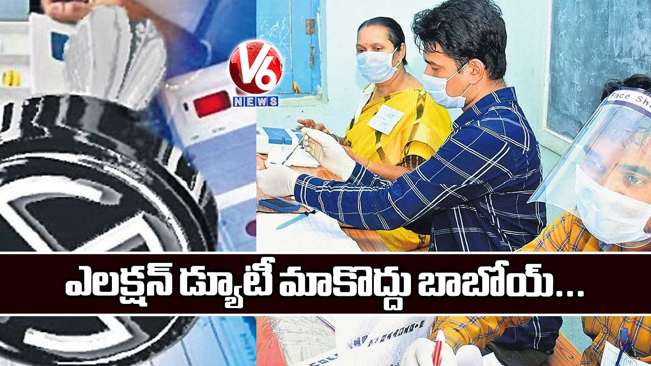 ఇప్పటికే ఎలక్షన్ డ్యూటీలో నిమగ్నమైన అధికారుల్లో దాదాపు 10 శాతం మందికి పాజిటివ్ వచ్చింది. దీంతో తమకు కరోనా సోకుతుందేమోనని ఇతర సిబ్బంది ఆందోళన చెందుతున్నారు. అదే సమయంలో ప్రాణాల కంటే డ్యూటీ ముఖ్యం కాదంటూ ఎలక్షన్ ట్రైనింగ్కు కొందరు అధికారులు వెళ్లలేదు. రెండు కార్పొరేషన్లు, ఐదు మున్సిపాలిటీల్లో 1,530 పోలింగ్ కేంద్రాలున్నాయి. ప్రతి పోలింగ్ సెంటర్కు ఐదుగురు చొప్పున ఎన్నికల అధికారులు పనిచేయాల్సి ఉంటుంది. దీనికి అదనంగా మరో 20 శాతం సిబ్బందిని నియమించారు. ఇతర పనులకు కొంత సిబ్బంది అవసరం ఉంటుంది. ఇలా రాష్ట్రంలో 30న జరగనున్న మినీ మున్సిపల్ ఎన్నికలకు దాదాపు 11 వేల మందిని ఎస్ఈసీ వాడుకుంటోంది. ఇందులో 30 శాతం మంది ట్రైనింగ్కు డుమ్మా కొట్టారు. దీంతో ఆఫీసర్లు డైలమాలో పడ్డారు. కరోనా టైమ్లో తమ కుటుంబాలకు ఇబ్బంది కలిగించి, ప్రాణాల మీదకు తెచ్చుకునే ఈ డ్యూటీ చేయలేమని కొందరు సిబ్బంది లీవ్ పెట్టగా.. ఇంకొందరు తమ ఆరోగ్యం బాగా లేదని డ్యూటీకి రాలేమని చెబుతున్నారు. దీంతో మున్సిపోల్స్ నిర్వహణ ఆయా జిల్లాల కలెక్టర్లకు పెనుభారంగా మారింది.