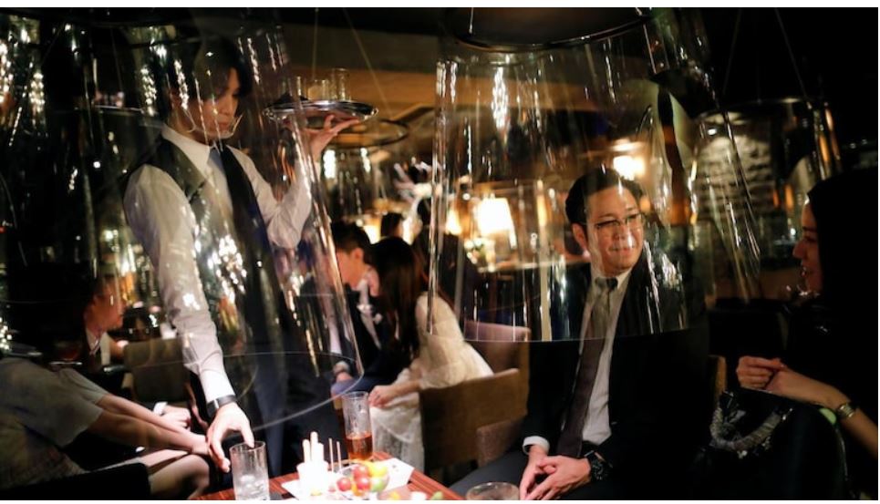 కోనికల్ క్లియర్ అక్రిలిక్ స్క్రీన్స్ను కస్ట్మర్స్ తల, భుజాలను కవర్ చేసేలా పైనుంచి వేలాడేలా నిర్వాహకులు వాటిని అమర్చారు. ఈ షీట్స్ ఒక కస్టమర్కు మరో కస్టమర్కు మధ్య దూరం ఉండేలా ఏర్పాటు చేశారు. అలాగే సర్వర్స్ కూడా దూరం నుంచే సర్వ్ చేసేలా అరేంజ్మెంట్స్ చేశారు. దీనిపై కస్టమర్స్తోపాటు సర్వర్స్ కూడా హర్షం వ్యక్తం చేస్తున్నారు. ‘ఇన్ఫెక్షన్ సోకే ప్రమాదం ఉంటే నేను కస్టమర్స్తో సరిగ్గా మాట్లాడేను. కానీ ఈ జాగ్రత్త చర్యలు ఏర్పాటు చేసిన తర్వాత నేను సురక్షితంగా భావిస్తున్నా’ అని 27 ఏళ్ల మాకో ఓకీ అనే స్టాఫ్ వర్కర్ చెప్పాడు.
