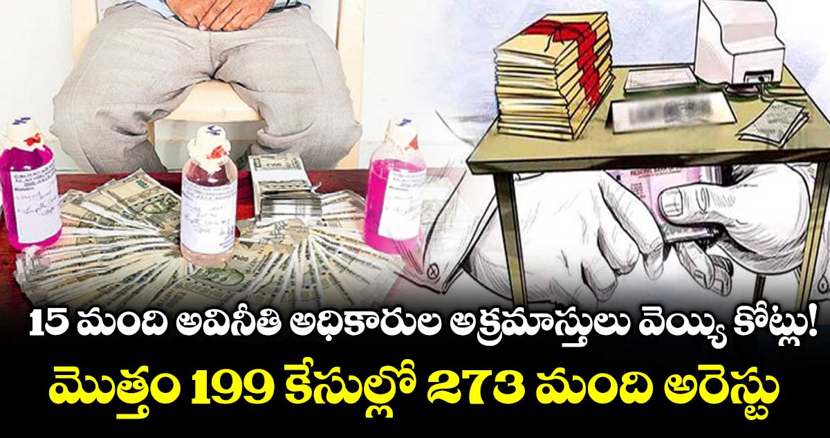 డాక్యుమెంట్ల ప్రకారం వీళ్ల అక్రమాస్తుల విలువ రూ.96.14 కోట్లే ఉన్నప్పటికీ, ప్రస్తుత మార్కెట్ వ్యాల్యూ ప్రకారం రూ.వెయ్యి కోట్లకు పైగా ఉంటుందని అంచనా వేసింది. ఒక్కో అధికారి వద్ద రూ.20 కోట్ల నుంచి రూ .100 కోట్ల వరకు ఉన్నట్టు గుర్తించింది. ఇక ఈ ఏడాది మొత్తం 199 కేసుల్లో 273 మందిని ఏసీబీ అరెస్ట్ చేసింది.