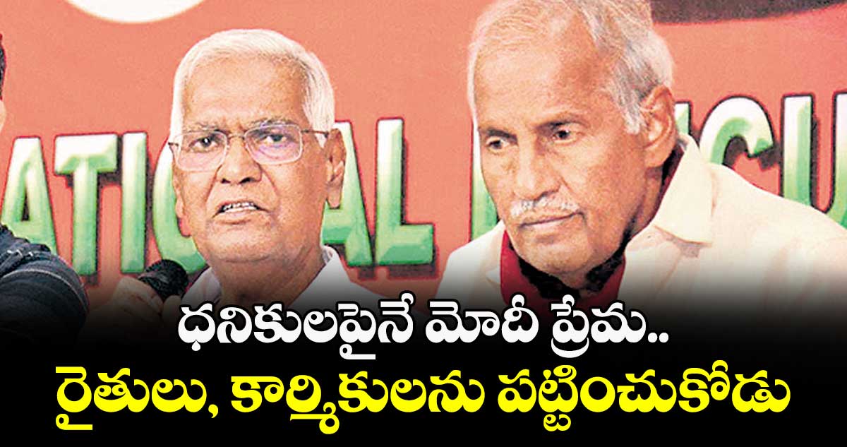 ఖమ్మం, వెలుగు: ప్రధాని నరేంద్ర మోదీకి దేశ రైతులు, కార్మికుల గురించి పట్టదని, ఆయన ప్రేమంతా సంపన్న వర్గాలపైనే అని సీపీఐ జాతీయ ప్రధాన కార్యదర్శి డి. రాజా అన్నారు. అమెరికా అధ్యక్షుడు డొనాల్డ్ ట్రంప్ సామ్రాజ్యవాద ధోరణితో వ్యవహరిస్తున్నా ప్రధాని కనీ సం ఖండించలేని స్థితిలో ఉన్నారని విమర్శించారు. సీపీఐ జాతీయ కౌన్సిల్ సమావేశాలు ముగిసిన తర్వాత ఖమ్మంలో జరిగిన మీడియాతో రాజా మాట్లాడారు.