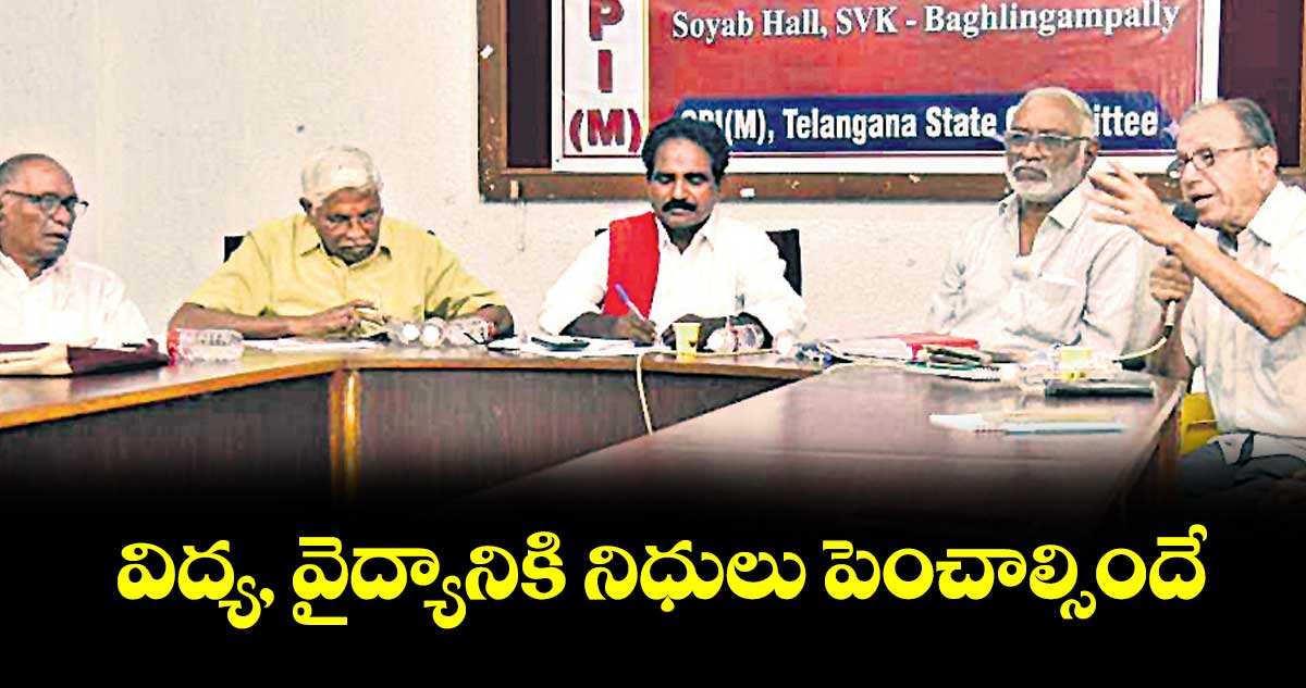 హైదరాబాద్, వెలుగు: రాష్ట్ర బడ్జెట్లో విద్య, వైద్య రంగాలకు అత్యధిక ప్రాధాన్యతనిచ్చి నిధుల కేటాయింపును మరింత పెంచాలని ప్రభుత్వాన్ని పలువురు మేధావులు, వామపక్ష నేతలు డిమాండ్ చేశారు. శనివారం హైదరాబాద్లోని సుందరయ్య విజ్ఞాన కేంద్రంలో సీపీఎం రాష్ట్ర కార్యదర్శి జాన్వెస్లీ అధ్యక్షతన ‘బడ్జెట్ - కేటాయింపులు’ అనే అంశంపై రౌండ్ టేబుల్ సమావేశం జరిగింది.
