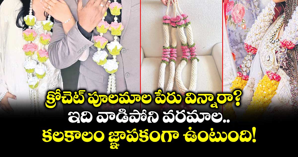క్రోచెట్ వరమాల పేరు విన్నారా? చాలా కొత్తగా ఉంది కదూ! అవును, పెండ్లిళ్లలో వధూవరులు మార్చుకునే వరమాలలు సాధారణంగా పూలతో అల్లుతారు. బంతి, చామంతి, గులాబీ, మల్లెలు, విరజాజులు, లిల్లీ, తామరపూలు వంటి సువాసన వెదజల్లే పూలతో ఎంతో అందంగా, ఆకర్షణీయంగా తయారుచేస్తారు. పెండ్లి బట్టలు ధరించిన వధూవరులు అందరి సమక్షంలో దండలు మార్చుకోవడం ఆనవాయతీ. పెండ్లి అనేకాదు.. ఎంగేజ్మెంట్, రిసెప్షన్తోపాటు ఇప్పుడు జరుపుకుంటోన్న హల్దీ ఫంక్షన్లలోనూ పూలదండలు వేసుకుంటారు. ట్రెడిషన్ ఏదైనా పూలదండలు మార్చుకోవడం కామన్. అయితే, పూలు సాయంత్రానికల్లా వాడిపోవడం వాటి నైజం. అందుకే రాత్రిపూట కార్యక్రమాలు పెట్టుకునేవాళ్లు ఆ టైం వరకు వాటిని జాగ్రత్తగా భద్రపరుస్తారు. అలా చూసుకున్నా పొద్దుటికల్లా పూలు వాడిపోవడం సహజం. దీంతో క్రోచెట్ డిజైనర్స్ కొత్త ట్రెండ్ను పరిచయం చేశారు. పూల మాల వాడిపోకుండా, పర్యావరణానికి నష్టం కలగకుండా, కలకాలం గుర్తుండిపోయే జ్ఞాపకంలా దాచుకునేలా అదిరిపోయే ఐడియా ఆలోచించారు.