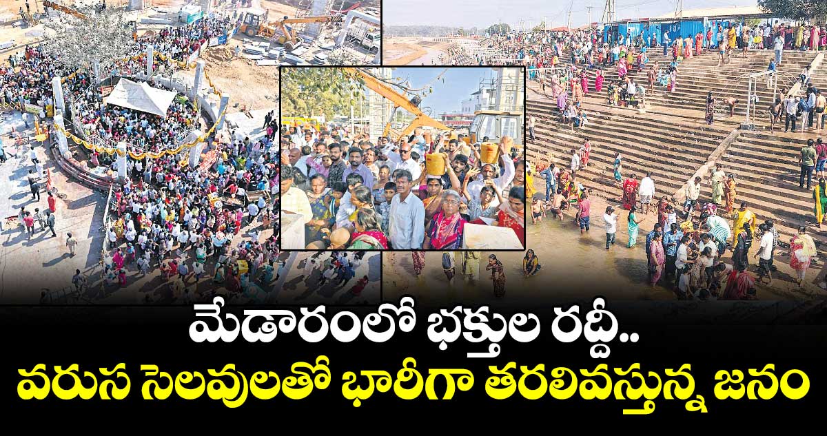 అనంతరం మేడారం చుట్టుపక్క ప్రాంతాల్లోని వనంలోకి వెళ్లి వంటావార్పు చేసుకున్నారు. కుటుంబ సభ్యులతో కలిసి రోజంతా సంతోషంగా గడిపారు. భక్తుల రద్దీ దృష్ట్యా పోలీస్ అధికారులు ఎలాంటి అవాంఛనీయ సంఘటనలు జరగకుండా భారీ బందోబస్తు నిర్వహించారు. మేడారం రోడ్డు, తల్లుల గద్దెలు, జంపన్న వాగు, తదితర ప్రాంతాలు భక్తులతో నిండిపోయి ఉండడంతో ఉదయం నుంచి సాయంత్రం 4 గంటల వరకు రద్దీ కొనసాగింది. - తాడ్వాయి, వెలుగు