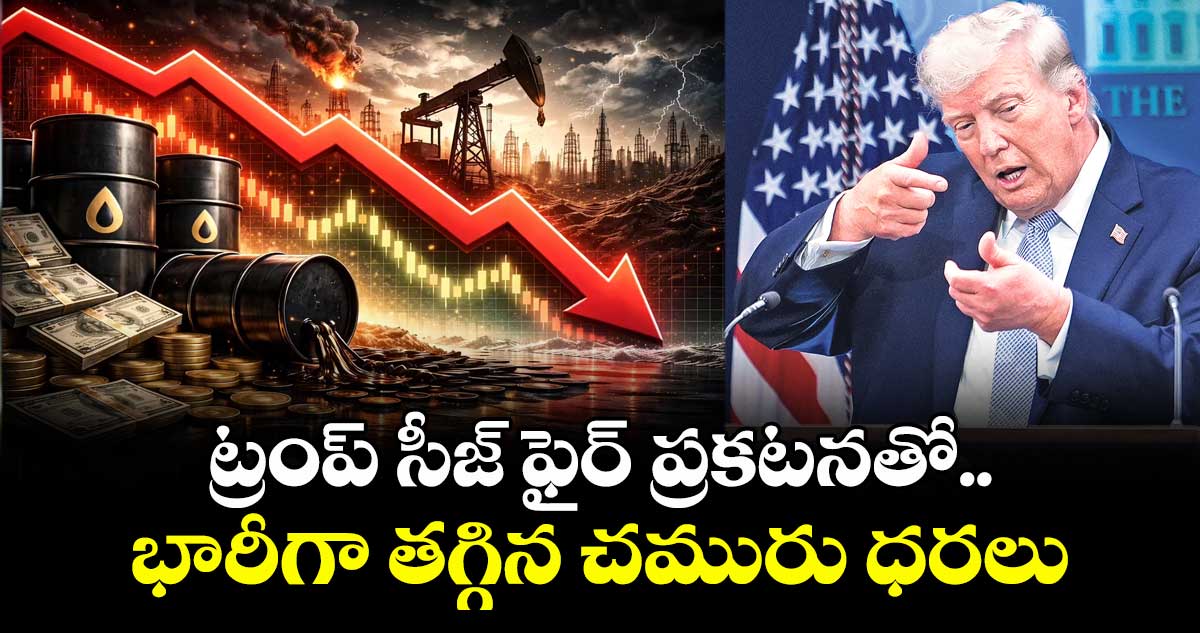 అమెరికా అధ్యక్షుడు డొనాల్డ్ ట్రంప్ కాల్పుల విరమణ ప్రకటనతో అంతర్జాతీయంగా చమురు ధరలు దిగొచ్చాయి. చమురు రవాణాకు కీలకమైన హార్ముల్ జలసంధి తెరుచుకునే అవకాశాలు కనిపిస్తుండటంతో అంతర్జాతీయ మార్కెట్లో చమురు ధరలు భారీగా తగ్గాయి. ఒక బ్యారెల్ చమురు ధర రూ. 95.05కు తగ్గింది. మరోవైపు ట్రంప్ ప్రకటనతో స్టాక్ మార్కెట్లు కూడా లాభపడ్డాయి.