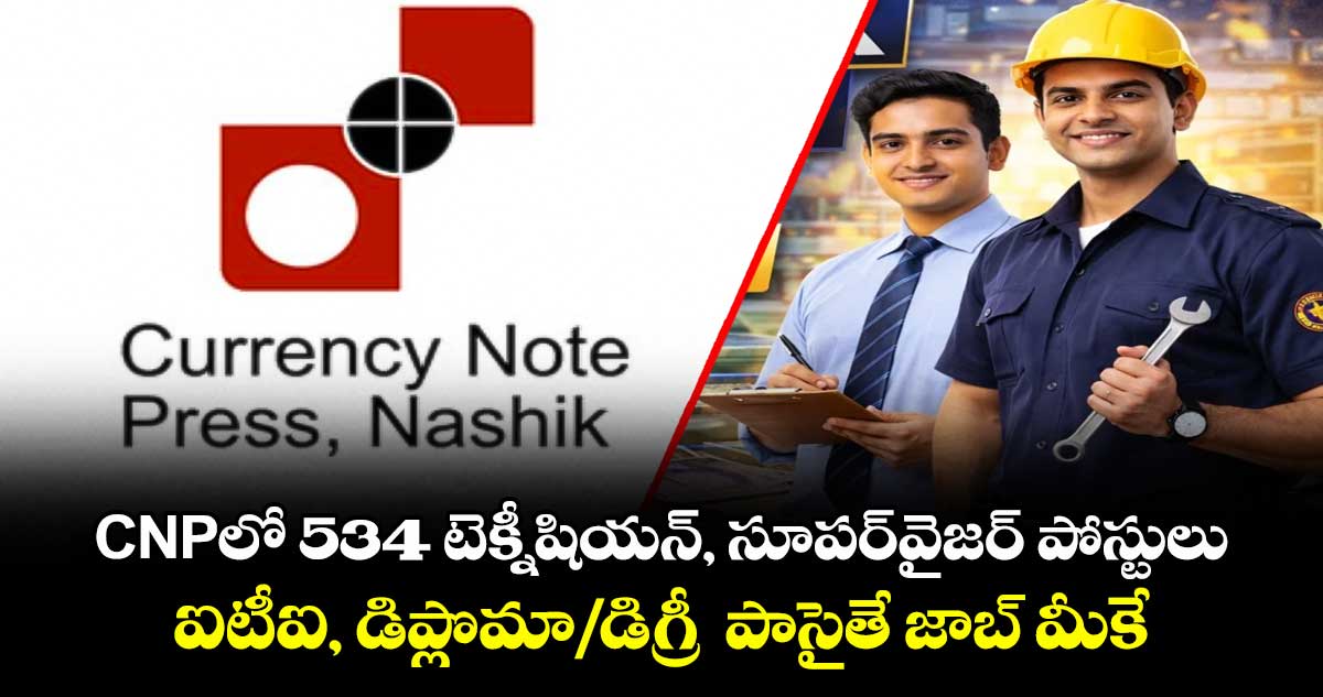 కరెన్సీ నోట్ ప్రెస్ నాసిక్ (సీఎన్పీ నాసిక్, ఎస్పీఎంసీఐఎల్) జూనియర్ టెక్నీషియన్, సూపర్వైజర్, ఇతర పోస్టుల భర్తీకి నోటిఫికేషన్ విడుదల చేసింది. ఆసక్తి, అర్హత గల అభ్యర్థులు ఆన్లైన్లో దరఖాస్తు చేసుకోవచ్చు. ఆన్లైన్ దరఖాస్తు ప్రక్రియ ఏప్రిల్ 20న ప్రారంభమై, మే 19న ముగియనున్నది.