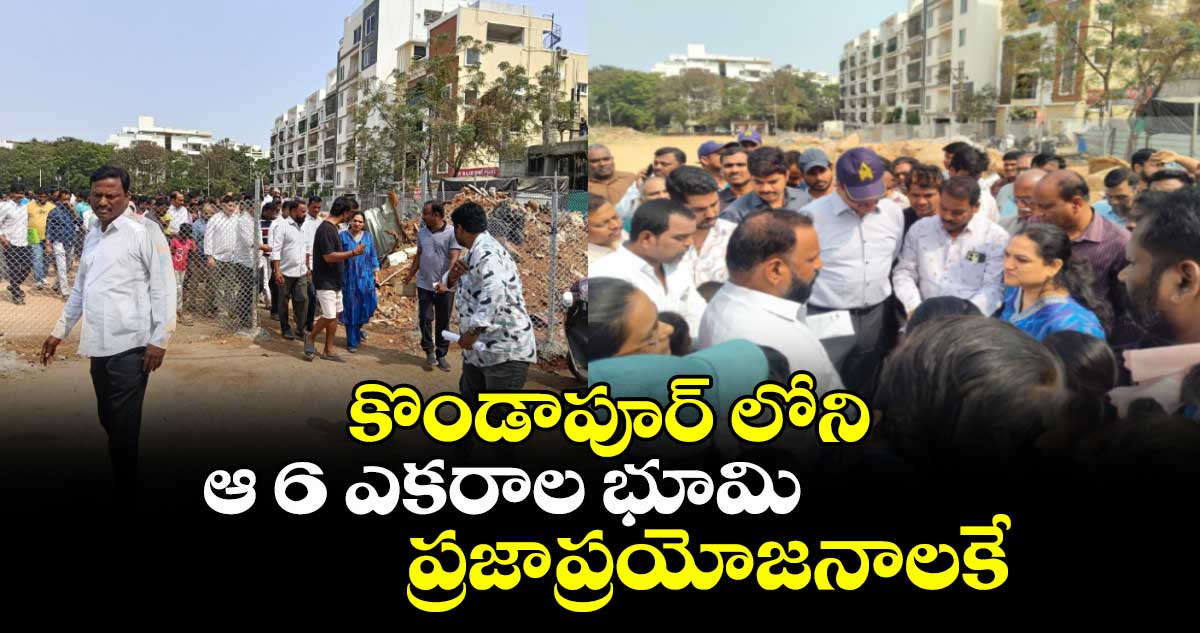 హైదరాబాద్ కొండాపూర్లోని రాజరాజేశ్వరి కాలనీలో ఆరు ఎకరాల ప్రభుత్వ భూమిని పార్క్, విద్యా సంస్థల స్థాపనకే వినియోగిస్తామని సైబరాబాద్ మున్సిపల్ కార్పొరేషన్ కమిషనర్ జీ సృజన స్పష్టం చేశారు. విద్యా సంస్థలు, పార్క్ ల అభివృద్ధికి కేటాయించిన భూమి ఆక్రమణకు గురైనట్లు ఫిర్యాదులు రావడంతో సీఎంసీ కమిషనర్ సృజన, విద్యాశాఖ కమిషనర్ నవీన్ నికోలస్, హైడ్రా కమిషనర్ రంగనాథ్ కలిసి పరిశీలించారు.