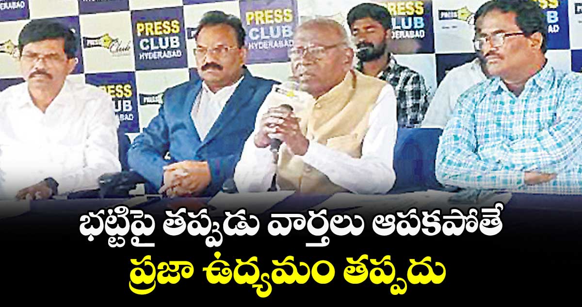 పంజాగుట్ట/ట్యాంక్ బండ్, వెలుగు: డిప్యూటీ సీఎం భట్టి విక్రమార్కను నైతికంగా దెబ్బతీసేందుకే ఓ దినపత్రిక అసత్య ప్రచారం చేస్తోందని, దీనిని సవరించుకోకుంటే ప్రజా ఉద్యమం తప్పదని దళిత సేన జాతీయ అధ్యక్షుడు జేబీ రాజు హెచ్చరించారు. అత్యున్నత స్థానాల్లో ఉన్న దళిత నాయకులపై కేవలం కుల పిచ్చితో తప్పుడు ప్రచారం చేస్తున్నారని మండిపడ్డారు.