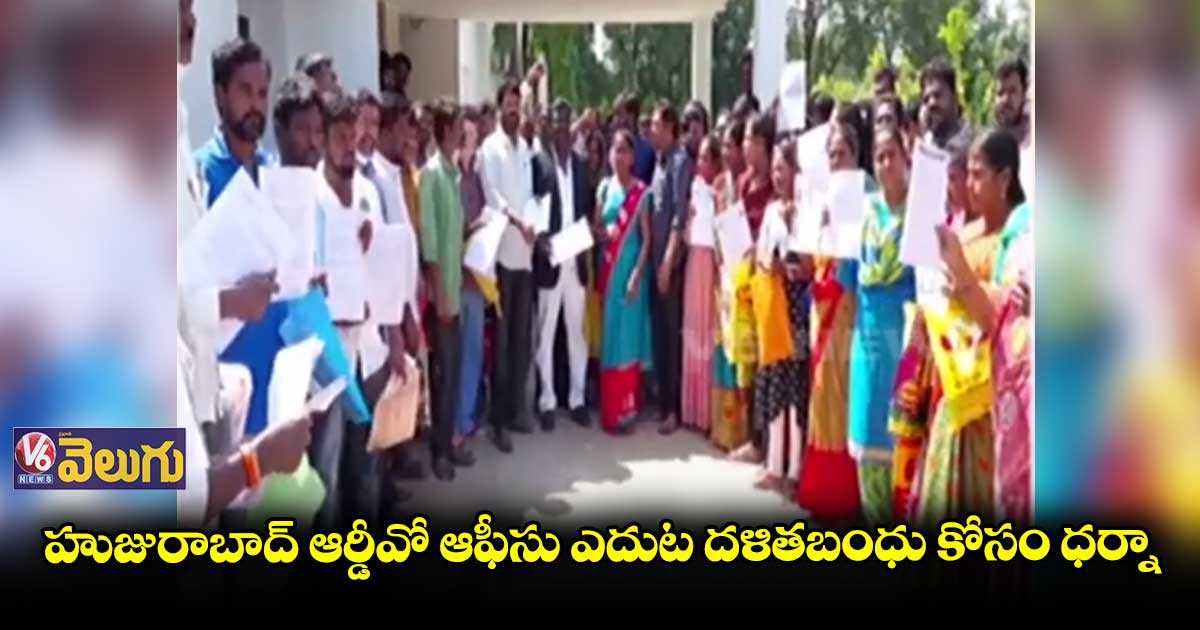 కరీంనగర్ జిల్లా: హుజురాబాద్ ఆర్డీఓ ఆఫీసు ఎదుట దళితులు ఆందోళనకు దిగారు. దళితబంధుకు పొందడానికి తమకు అన్ని అర్హతలున్న దళితబంధును ఎందుకు ఇవ్వటం లేదంటూ ధర్నా చేపట్టారు. సుమారు 400 మంది ఆందోళనలో పాల్గొన్నారు. దరఖాస్తులు పట్టుకుని ఆర్డీవో ఆఫీసు ముందు బైఠాయించి ధర్నా చేశారు.