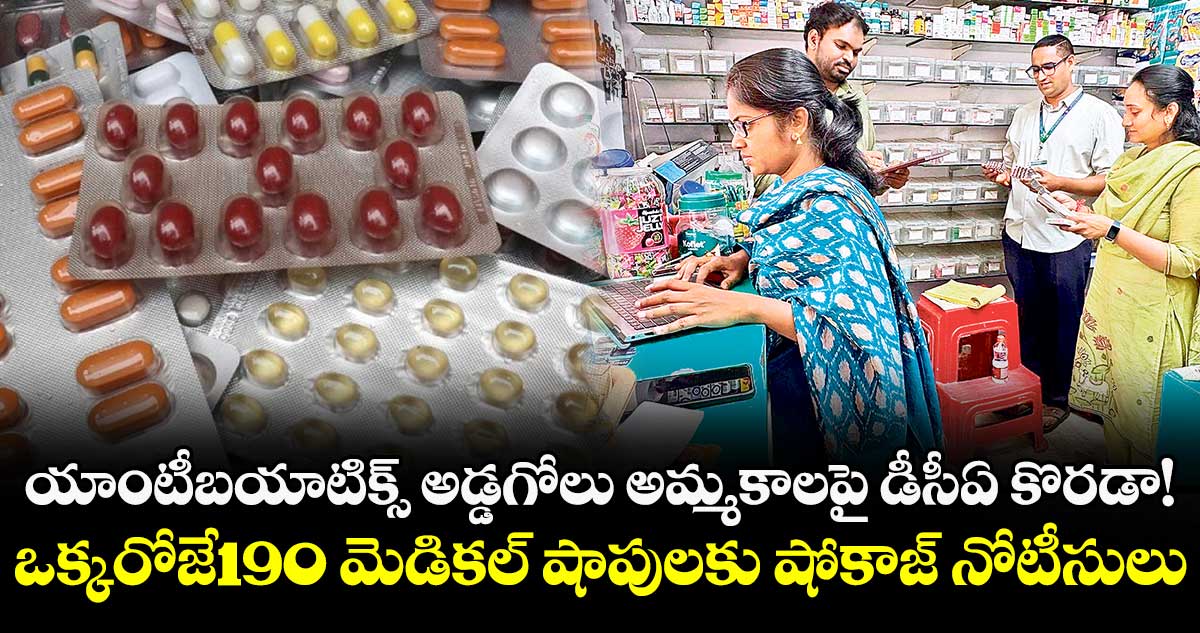 ఎంతమందికి యాంటీబయాటిక్స్ అమ్మారో రాసే రిజిస్టర్లు మెయింటైన్ చేయడం లేదని అధికారులు గుర్తించారు. ఒక్కరోజే190 మెడికల్ షాపుల యజమానులకు షోకాజ్ నోటీసులు జారీ చేశారు. వీరిపై డ్రగ్స్ అండ్ కాస్మెటిక్స్ చట్టం-1940 కింద క్రిమినల్ చర్యలు ఉంటాయని హెచ్చరించారు. కాగా, ఇష్టారాజ్యంగా యాంటీబయాటిక్స్ వాడటం వల్ల.. శరీరంలోని బ్యాక్టీరియా ముదిరిపోయి, మందులకు లొంగని సూపర్ బగ్స్ గా తయారవుతున్నాయని డీసీఏ డీజీ, ఐపీఎస్ షానవాజ్ ఖాసీం తెలిపారు.