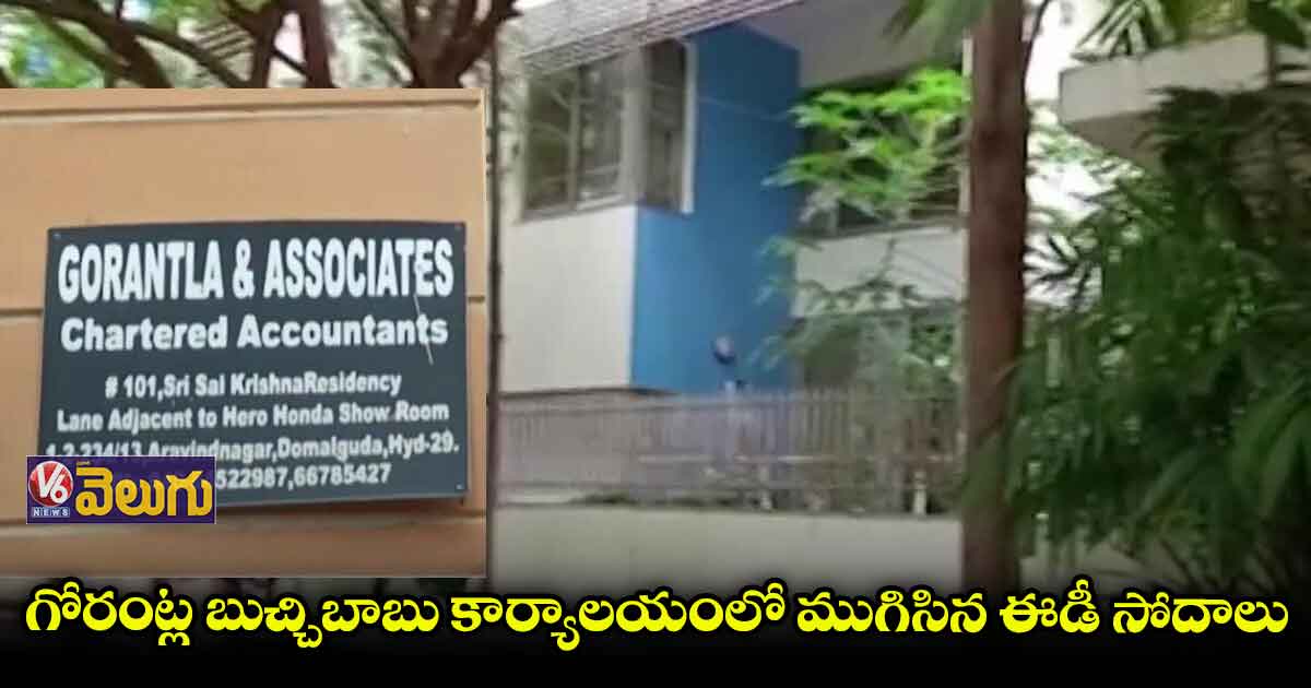 దోమలగూడలోని సీఏ గోరంట్ల బుచ్చిబాబు కార్యాలయంలో ఈడీ సోదాలు ముగిశాయి. శుక్రవారం ఉదయం 6 గంటల నుంచి శనివారం ఉదయం 5.30 గంటల వరకు తనిఖీలు కొనసాగాయి. 23 గంటల పాటు జరిపిన సోదాల్లో పలు కంపెనీలకు చెందిన కీలక డాక్యుమెంట్లు స్వాధీనం చేసుకున్నట్లు సమాచారం. ఢిల్లీ లిక్కర్ స్కామ్ కేసులో ఎన్ఫోర్స్మెంట్ డైరెక్టరేట్(ఈడీ) దర్యాప్తు ముమ్మరం చేసింది. శుక్రవారం హైదరాబాద్ సహా దేశవ్యాప్తంగా 40 చోట్ల దాడులు చేసింది. హైదరాబాద్లోని దోమలగూడ, రాయదుర్గం, గచ్చిబౌలి, మాదాపూర్, నానక్రాంగూడ, అంబర్పేట్ డీడీ కాలనీలో తనిఖీలు కొనసాగాయి. శ్రీసాయికృష్ణ రెసిడెన్సీలో గోరంట్ల బుచ్చిబాబు ఇల్లు, ఆఫీసుపై రైడ్ చేశారు. సీఏ, ఆడిటర్గా పనిచేసిన కంపెనీల వివరాలు రికార్డ్ చేసింది. ఆయా కంపెనీల లావాదేవీలకు సంబంధించి కీలక డాక్యుమెంట్లను స్వాధీనం చేసుకున్నారు.
